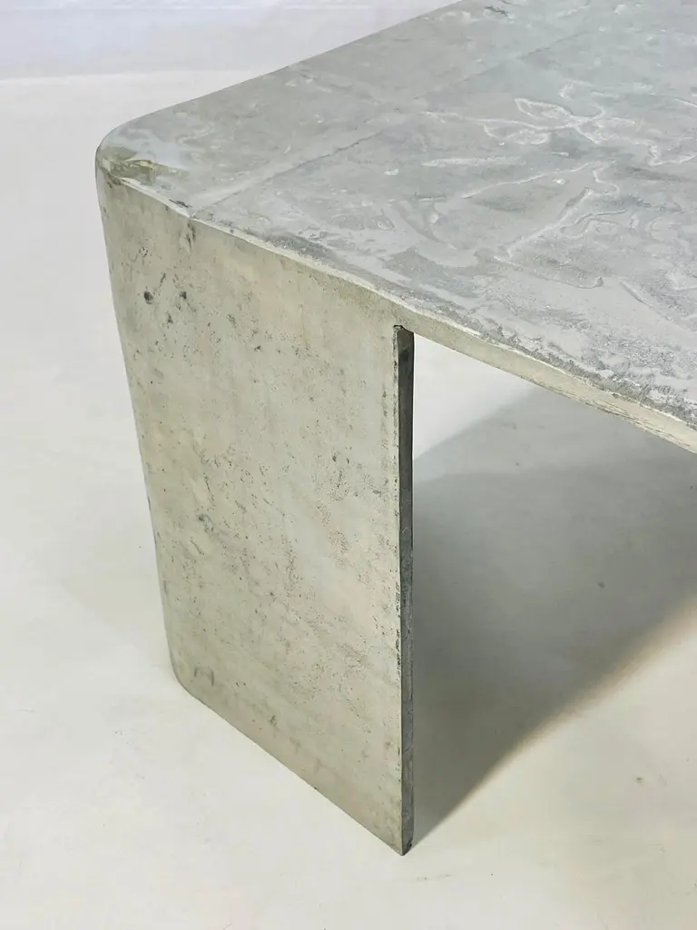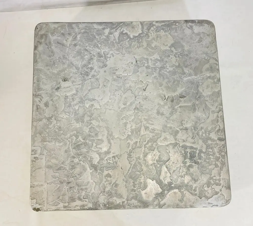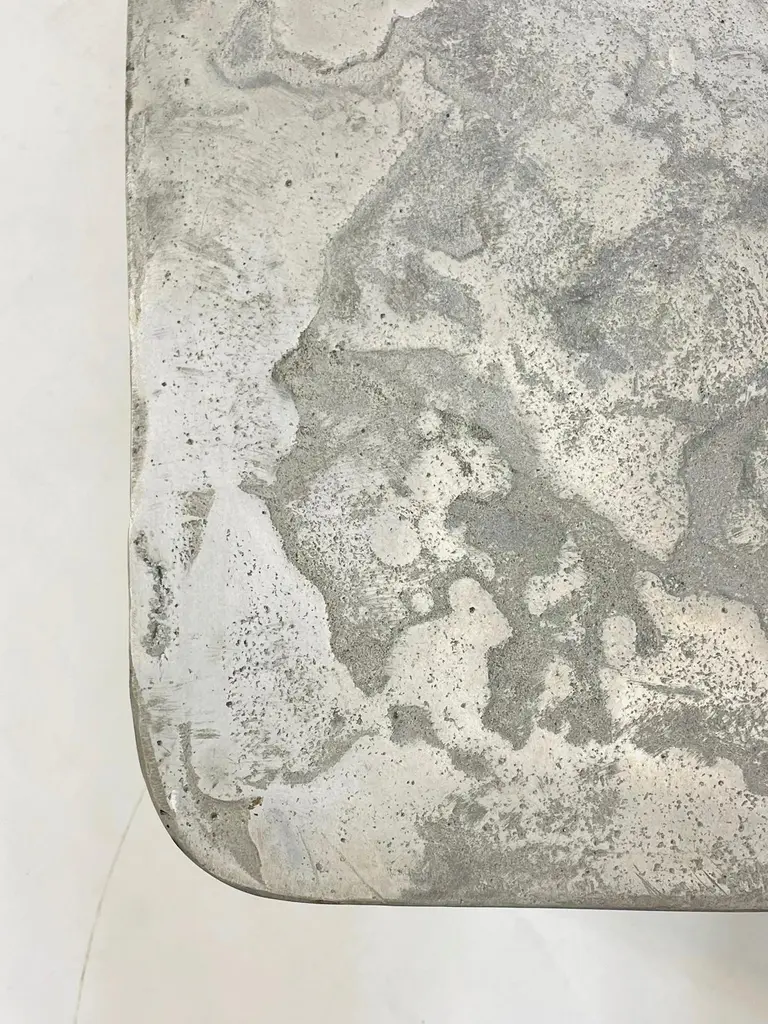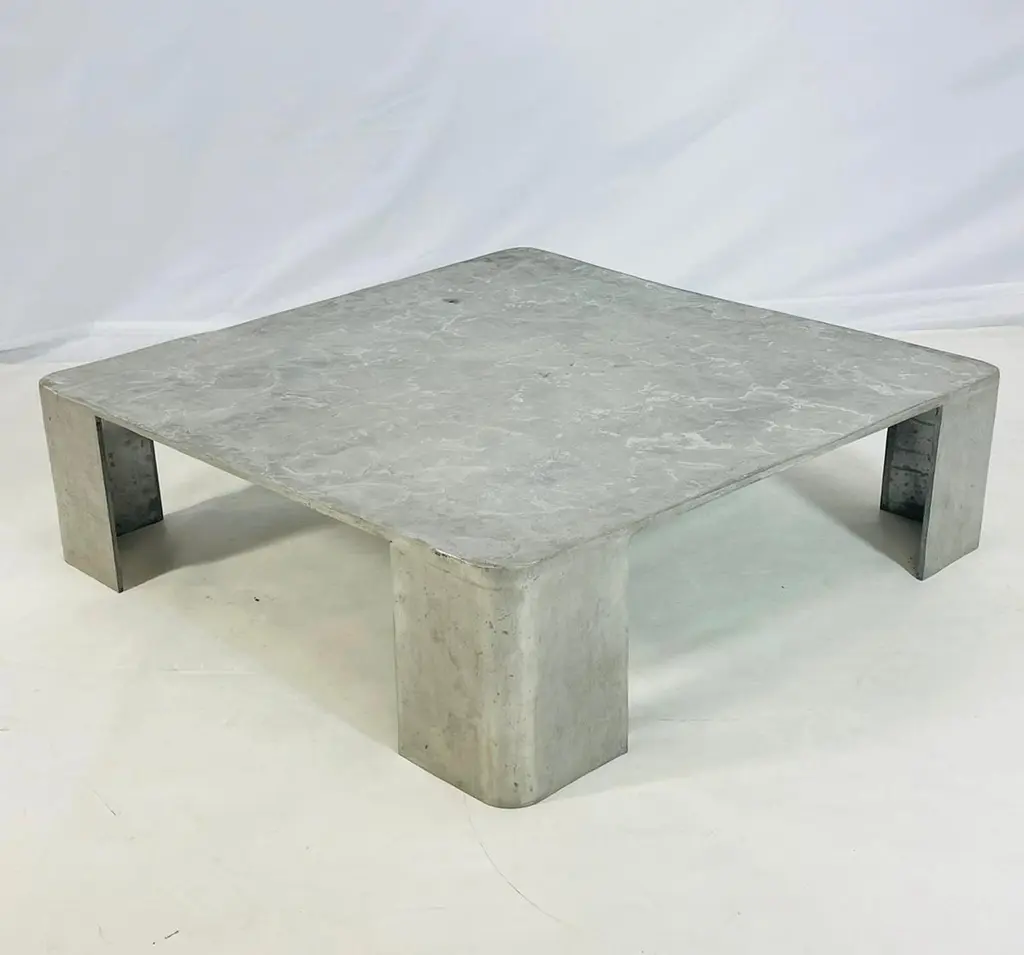 Striking in form and finish, this sculptural “Paulín” coffee table by OHLA Studio is crafted in cast aluminum, offering a bold reinterpretation of brutalist design. Made in Mexico, the table features a minimalist square silhouette with softened corners and thick, integrated legs that curve seamlessly into the top. The cast aluminum surface is richly textured with natural pitting and swirling patterns, lending it a raw, stone-like appearance while maintaining the durability and lightness of metal. A commanding centerpiece for modern, industrial, or art-forward spaces.Measurements: 42 inches wide x 42 inches deep x 12 inches high.