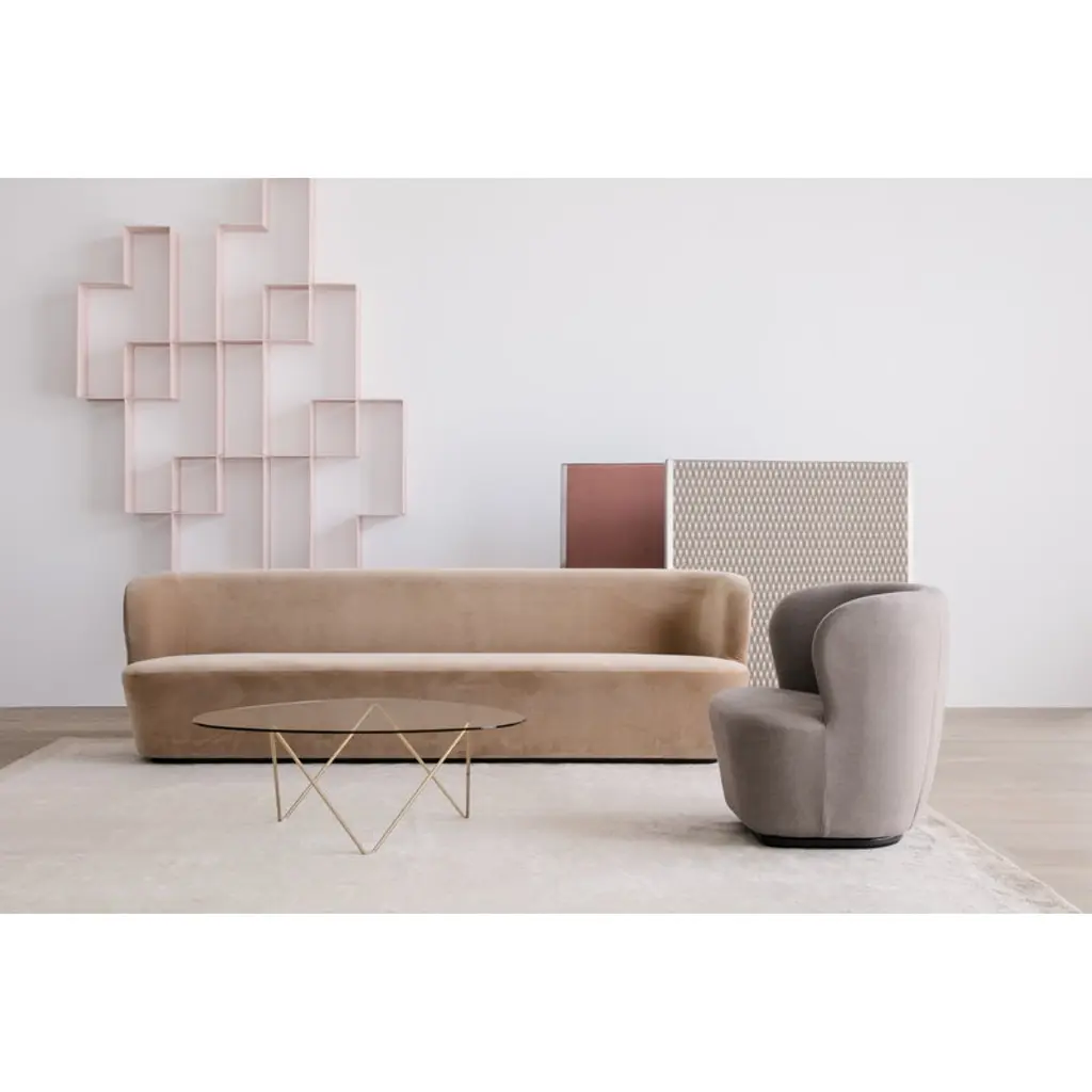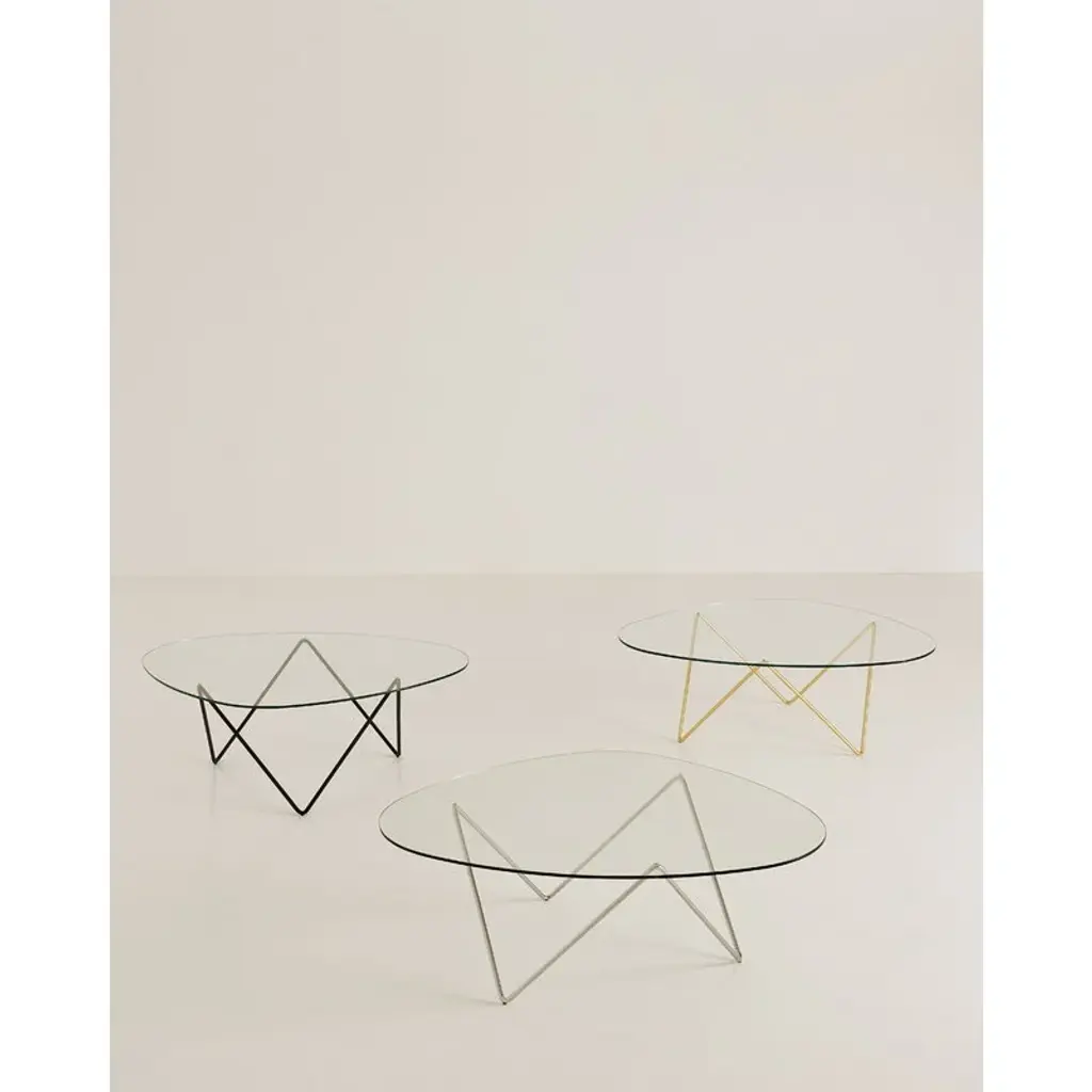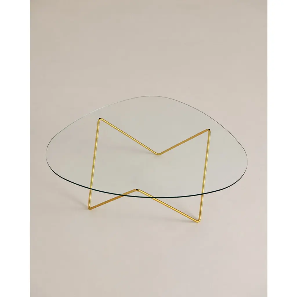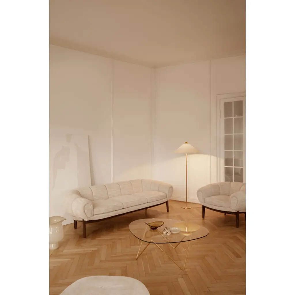 GUBI’s Pedrera coffee table was designed for Antoni Gaudi's famous La Pedrera building in Barcelona. In 1955, the loft space of La Pedrera was transformed from a laundry and storage area into 13 modern duplex apartments. Spanish architect Barba Corsini was in charge of the renovations, and to complement the modernist look of the rooms, Corsini also designed furniture and lighting for the apartments, including the Pedrera coffee table. The Pedrera coffee table has a vivid brass frame and an organically shaped glass top. It pairs perfectly with the lamps from the Pedrera collection, and also makes a distinctive eye-catcher by itself.