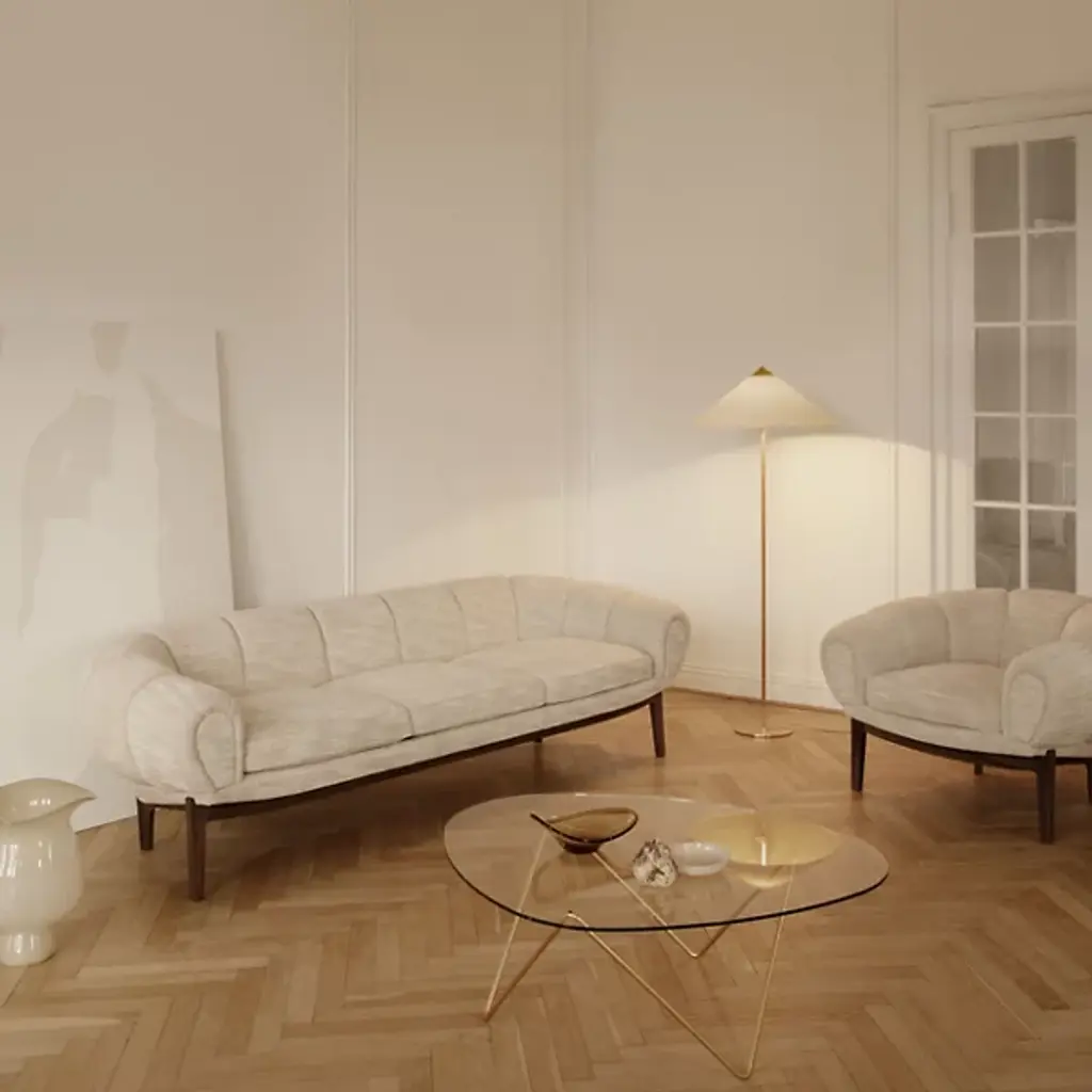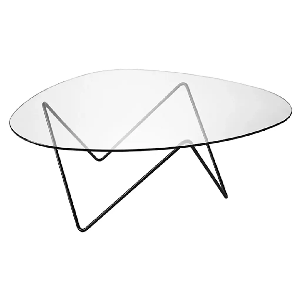 Named after Barcelona's flowy modernist building, the Pedrera Coffee Table pulls visual cues from the iconic landmark with inviting curves and a strong foundation. Barba Corsini designed the piece in 1955 for a loft in La Pedrera. Corsini designed works with 'powerful simplicity' in mind, an approach illustrated in the low-profile, organic shape of the glass top. The transparent glass puts in clear view the line drawing-like visual of the base. The steel base anchors the piece with strong V-shapes that prove lightweight for easy rearranging around the room.