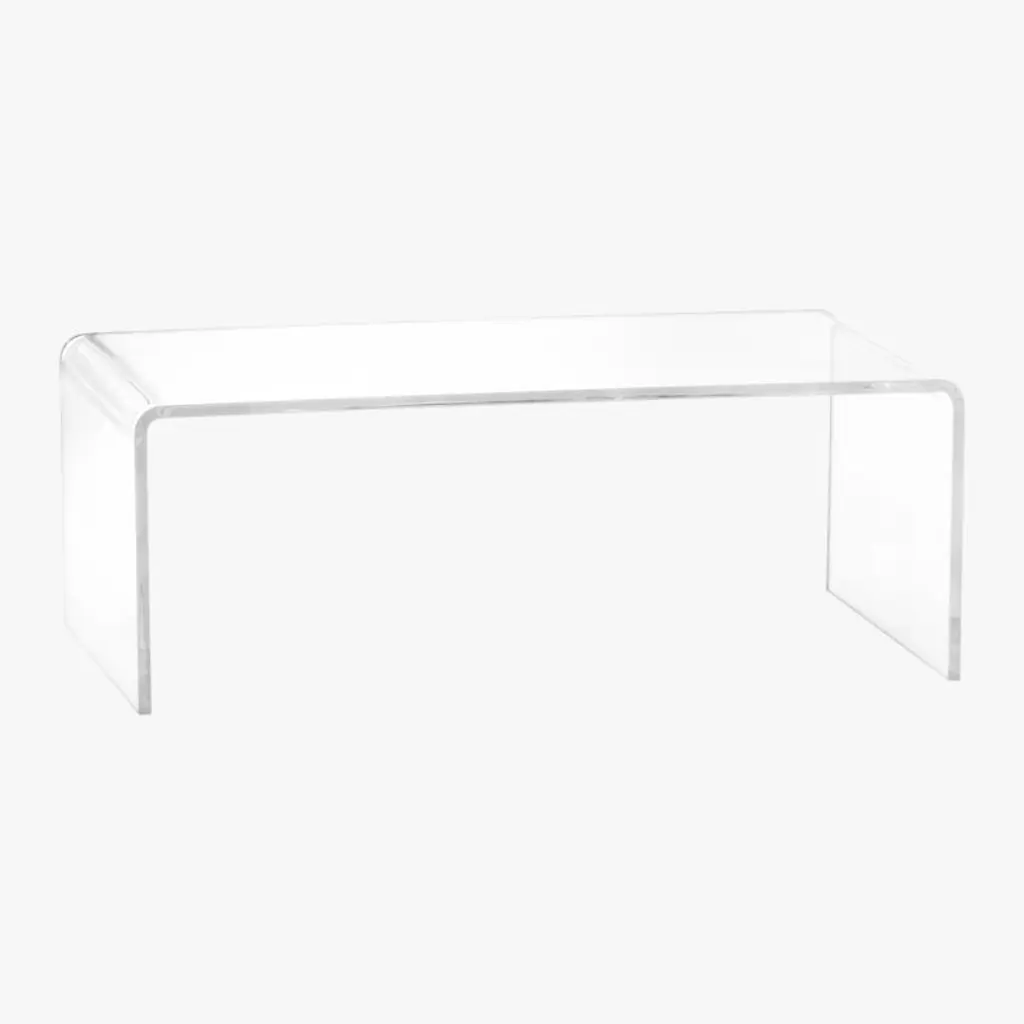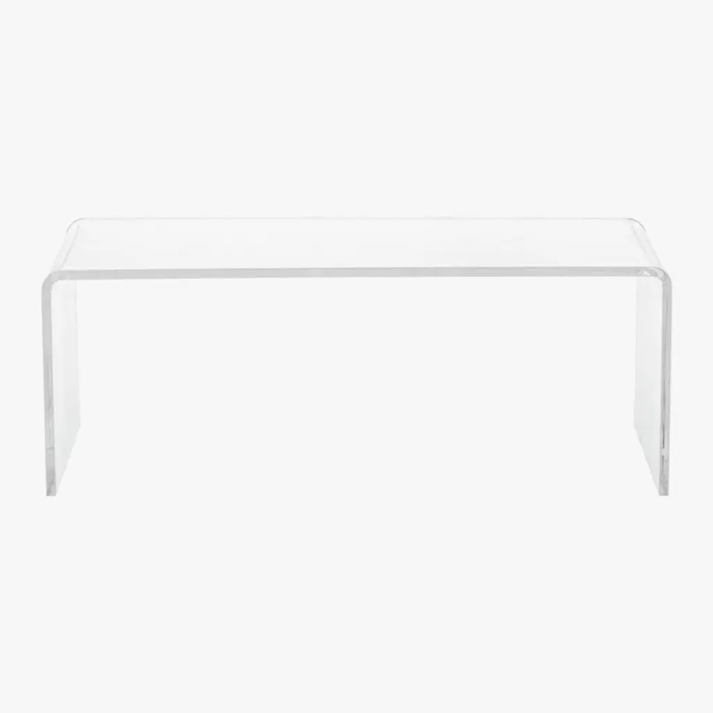 This transparent new surface floats in the room without taking up permanent visual residency. Thick half-inch molded acrylic adds clean mod edge in one seamless turn. Priced to disappear quickly, too.