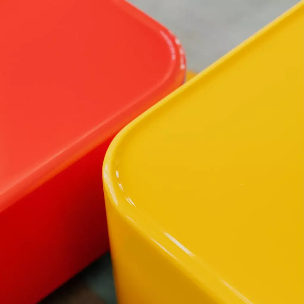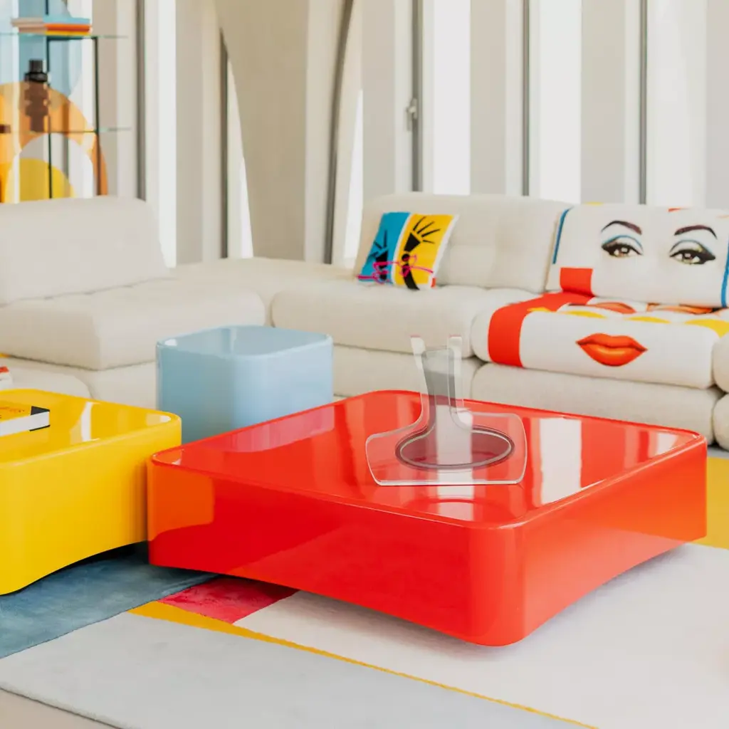 Imagined by Italian designer Maurizio Manzoni, these cube-shaped tables with rounded edges offer a harmonious balance between geometry and softness. Their discreet, recessed base gives them a sense of visual lightness, as if they were floating. Each table is conceived like a canvas, featuring broad surfaces in vibrant tones. Imagined by Italian designer Maurizio Manzoni, these cube-shaped tables with rounded edges offer a harmonious balance between geometry and softness. Their discreet, recessed base gives them a sense of visual lightness, as if they were floating. Each table is conceived like a canvas, featuring broad surfaces in vibrant tones.