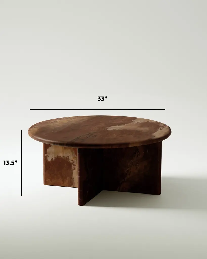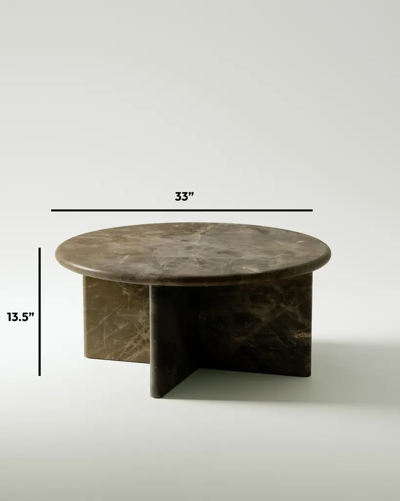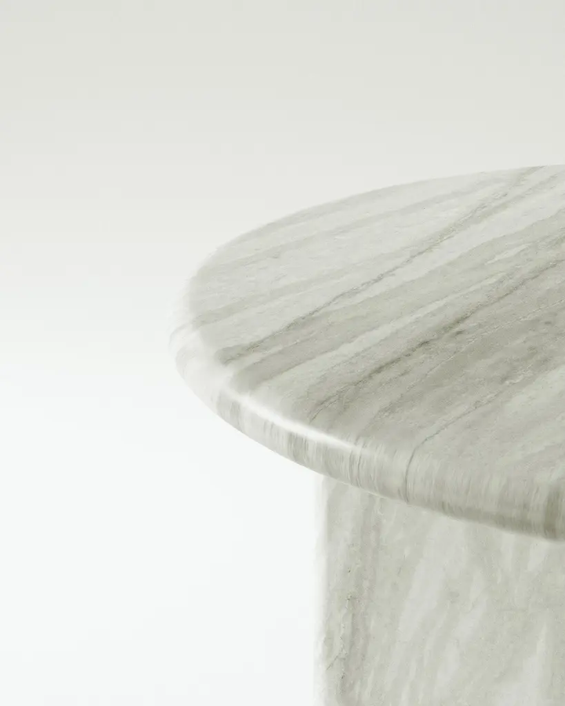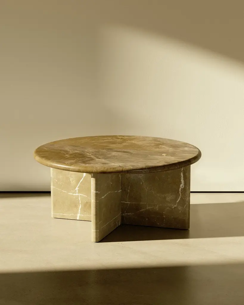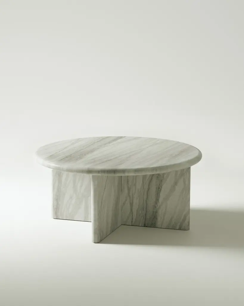 The Pernella petite round coffee table is luxuriously crafted purely of solid natural marble, onyx or travertine and conveys class and elegance. The sumptuously curved top strikingly contrasts with the angular and almost delicate lines of its base, resulting in a versatile look that adapts to a range of styles. The unique natural striations ensure no two tables are the same as each slab of marble is unduplicated in nature. Marble is a sought-after natural stone often used in interior design with part of its beauty being that natural stone is perfectly neutral, able to blend in or stand out as much as you want without being overly fussy. Also see the Pernella Round Coffee Table if you are looking for something a little higher. Samples Available Here!