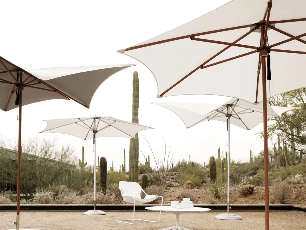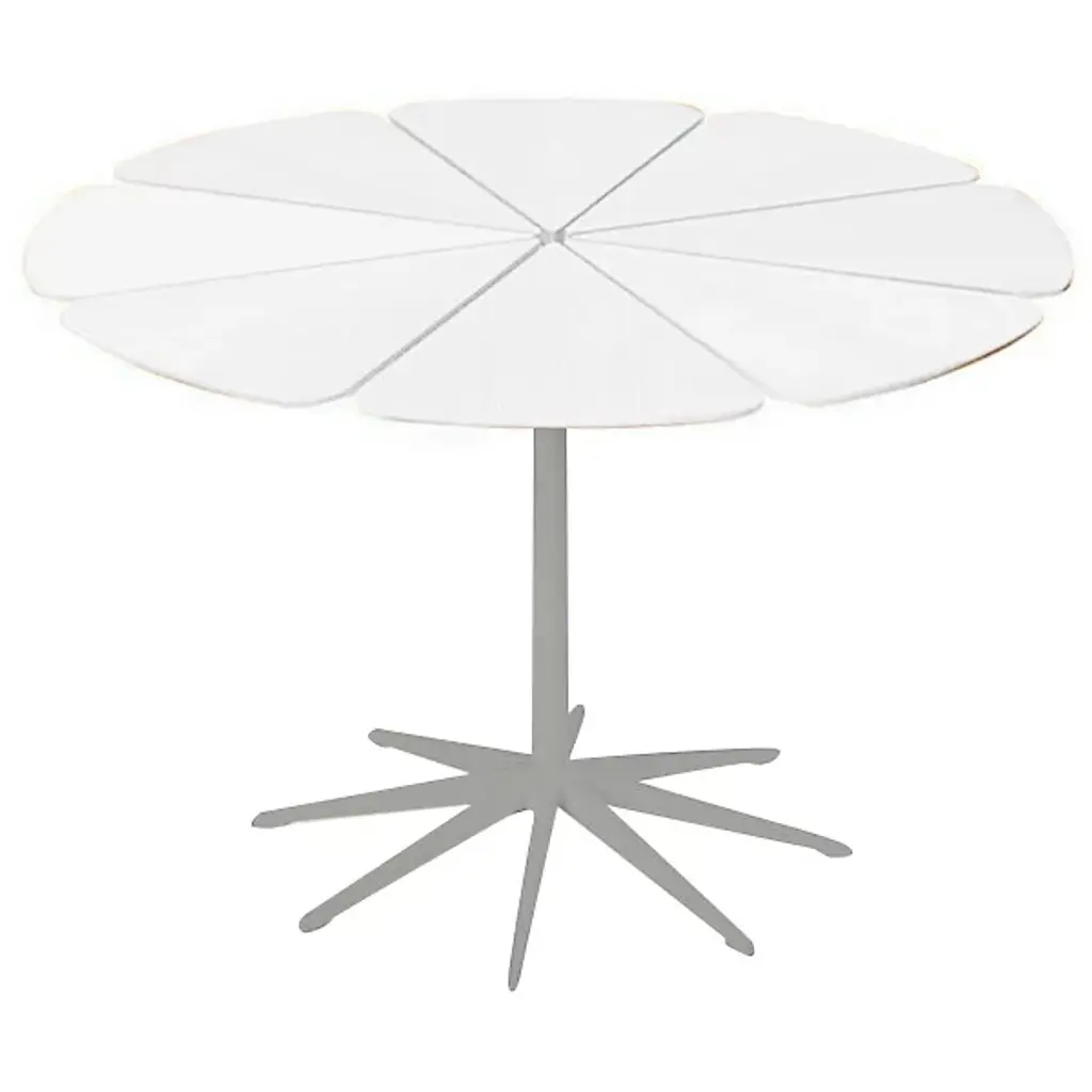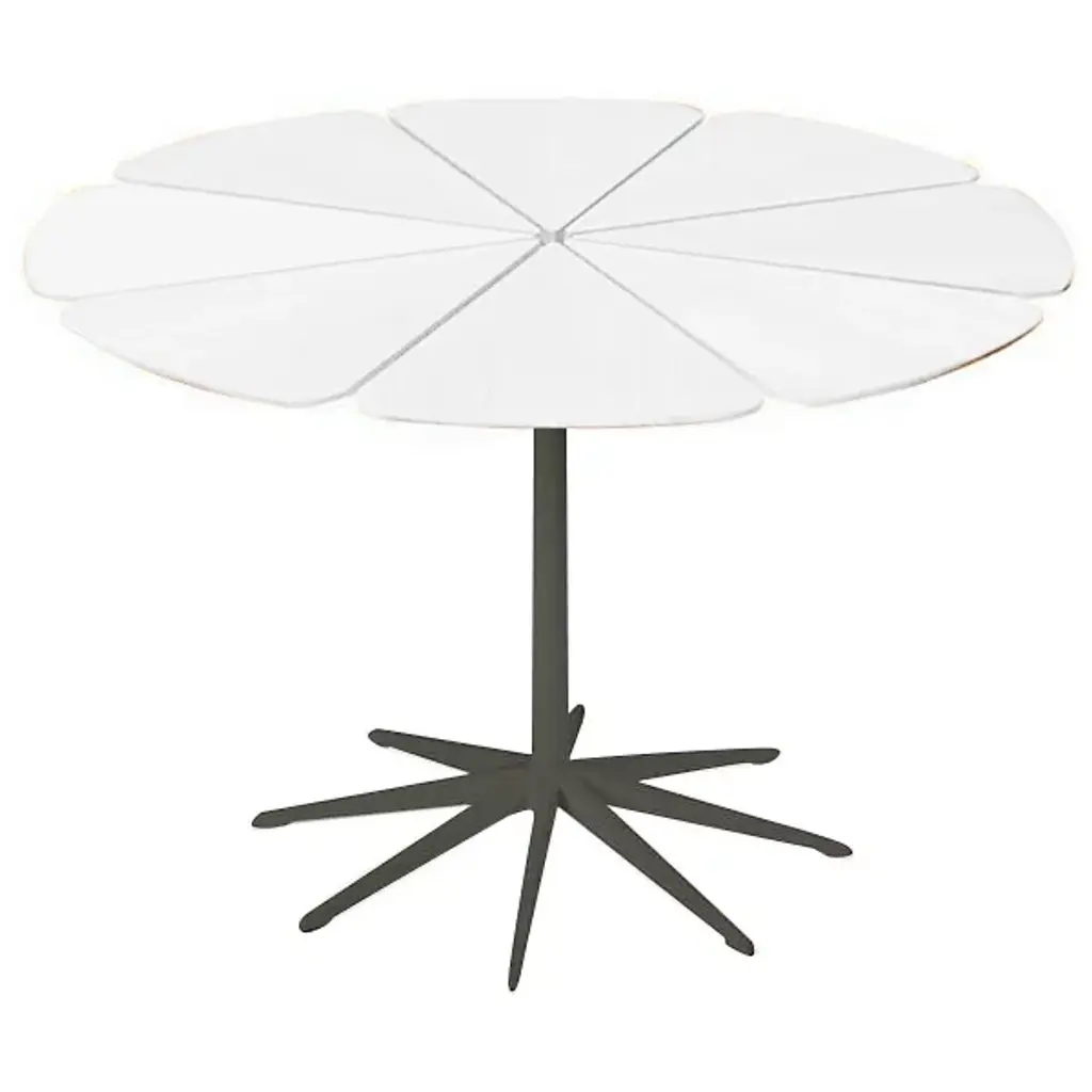 Inspired by the sight of a Queen Anne's Lace flower growing near his home, Richard Schultz designed the Petal Collection (1960) to have eight petals mounted on a cast-aluminum “spider" that keeps each one independent and allows the material to expand and contract with the weather. Suitable for indoor or outdoor use.