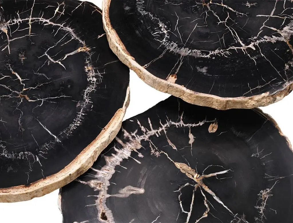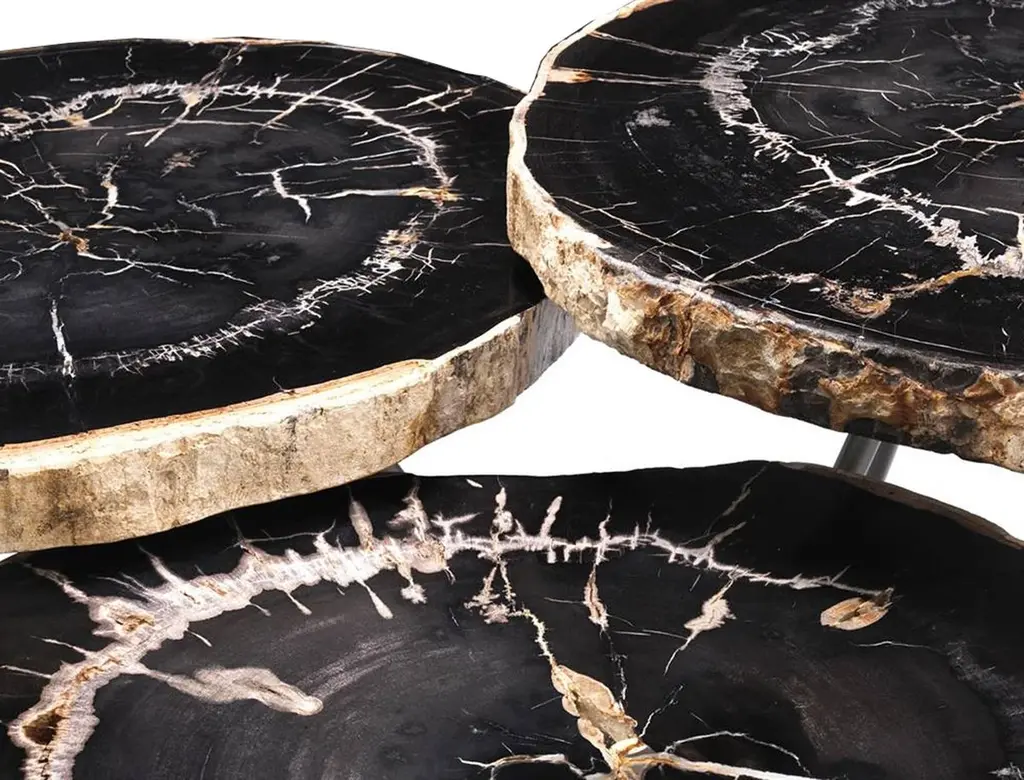 Petrified Wood Dark Slices Set Of 3 Coffee Table