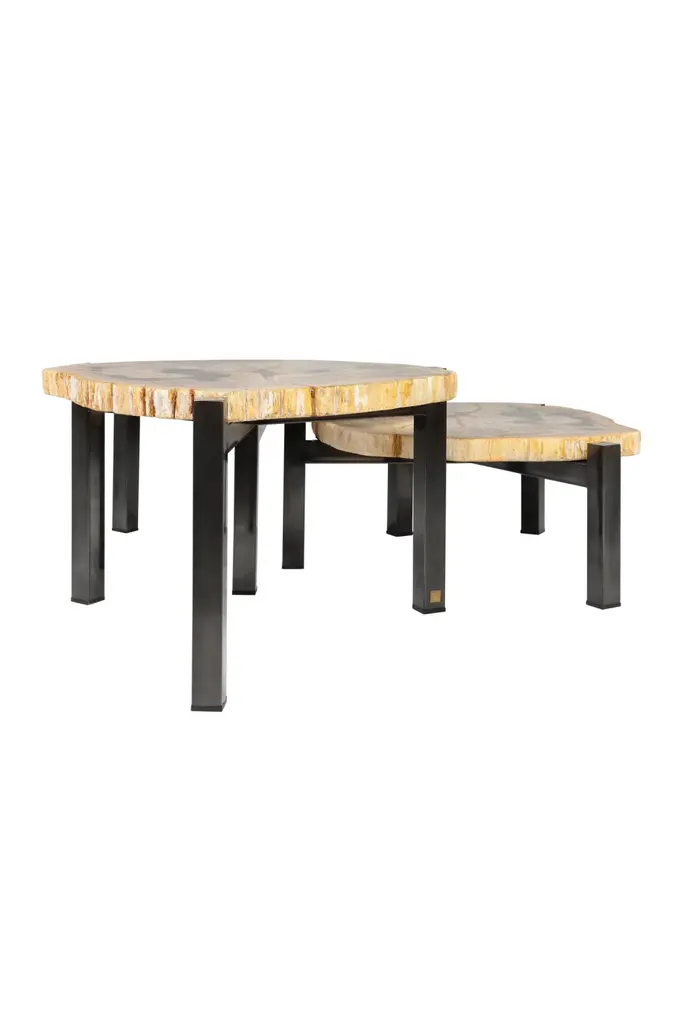 Discover refined elegance with this curated trio of nested coffee tables by Versmissen, each piece showcasing genuine petrified wood's timeless allure. These sculptural furnishings feature distinctive natural striations and warm mineral tones, transforming raw geological beauty into functional art. The intelligent nesting design maximizes flexibility—stack them for a striking focal point or distribute across rooms for layered sophistication. Ideal for the discerning collector, these tables transcend ordinary furniture, offering a tangible connection to Earth's ancient past while anchoring contemporary interiors with understated luxury and geological authenticity.