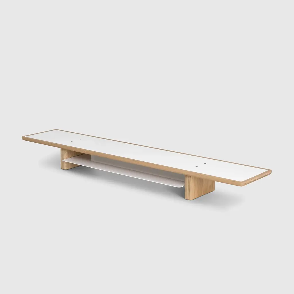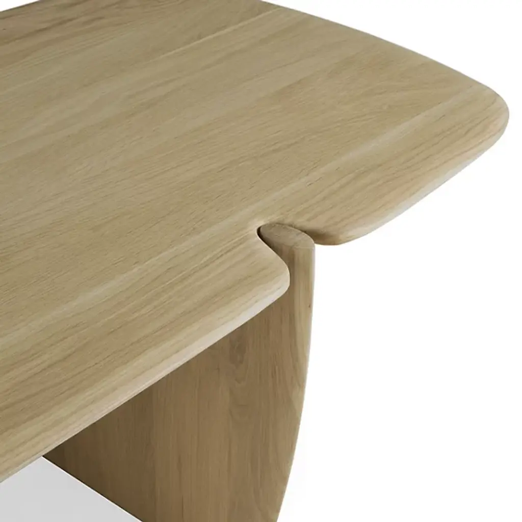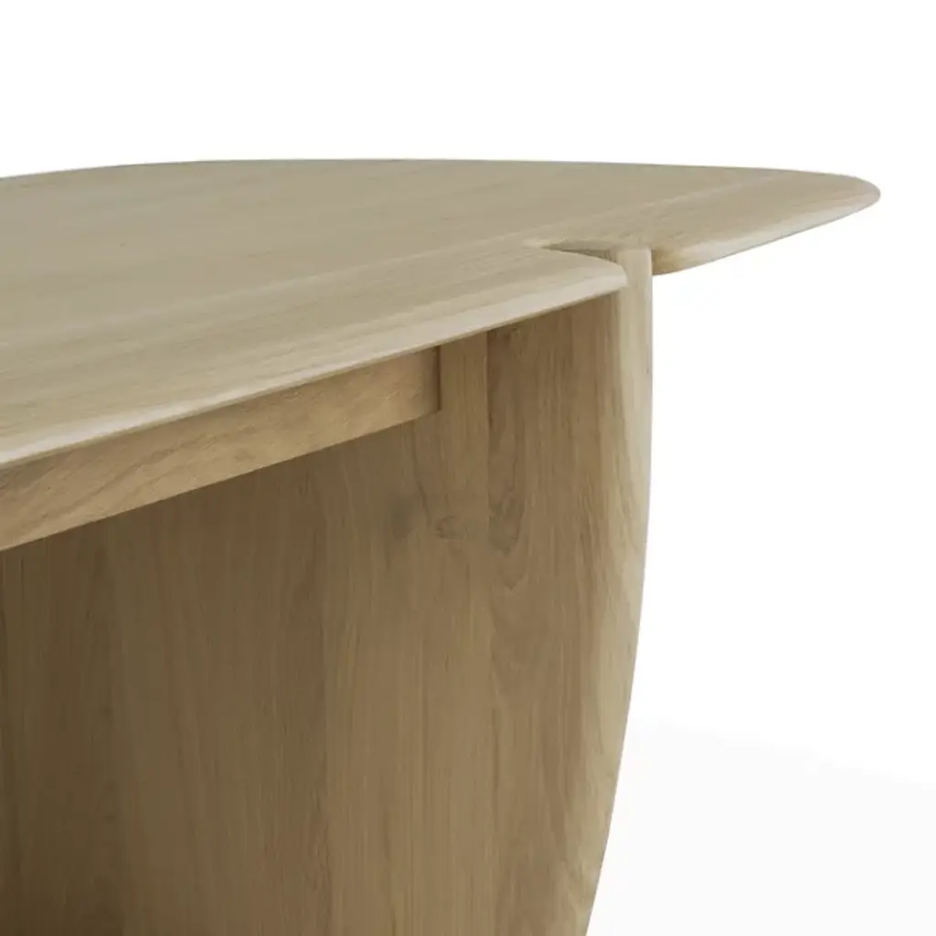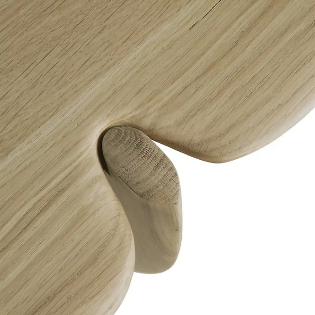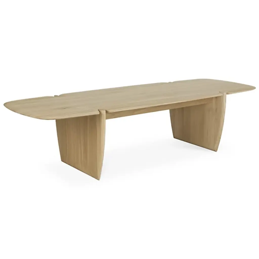The PI Oak Coffee Table from Ethnicraft pays homage to organic design and modern style with an airy natural design. Designed by Alain Van Havre and crafted from hand-finished oak, it displays a polished organic aesthetic where each plank’s unique wood grain and individual character are demonstrated with aplomb. Curving legs accompanied by a simple base form an architectural platform under the rectangular tabletop’s rounded plank, relieved slightly by curved cutouts. Strikingly simple at first glance yet full of intrigue in its construction, this occasional table balances elemental appeal with attention-grabbing lines for a casual, considered character.