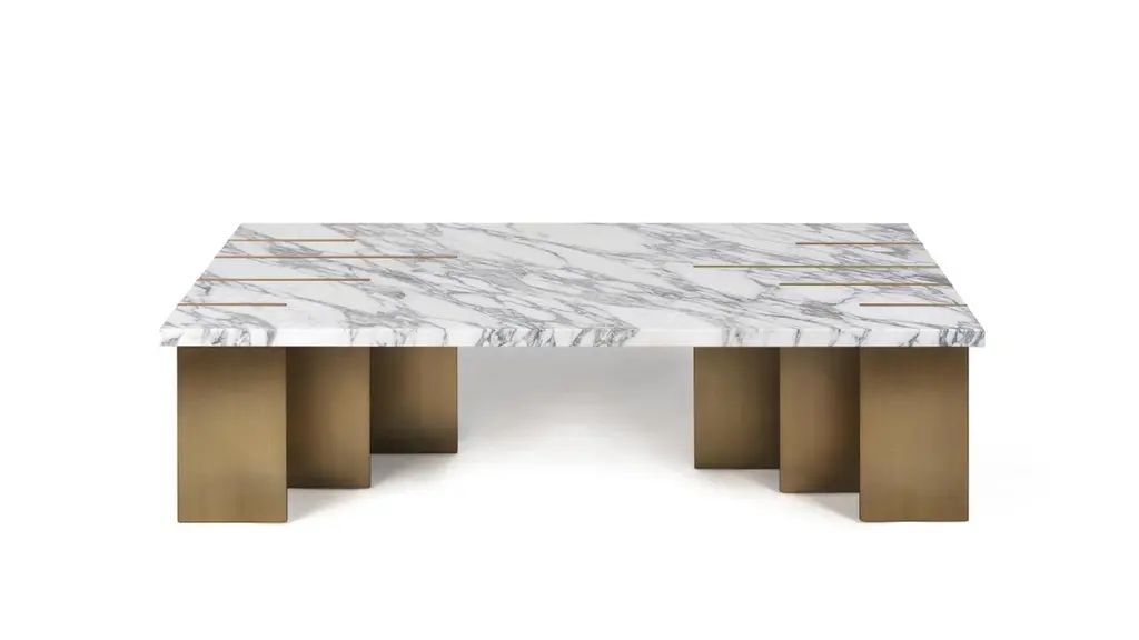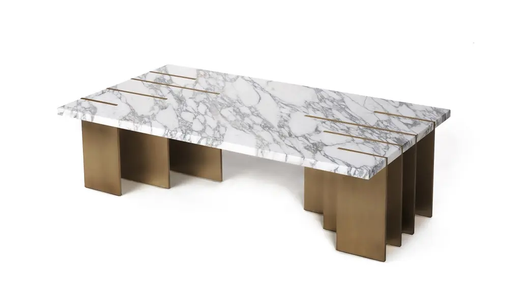Best Table Design at the International Design & Architecture Awards 2022The Pianist coffee table doesn’t represent the piano but the hands of the artist, vehicle of technique and emotion.The brass blades design the shape of the four longest fingers that, on a white marble keyboard, release a melody hidden within the musical notes. The minimal approach creates contrast between the architectural lines and the exquisite noble materials.The marble coffee table with brass blades was inspired by a drawing of Paul Klee, in which the Swiss painter portrays the soul of a musician and presents only the piano’s black keys, leaving the white keys on invisibility. Acclaimed by the international press, this contemporary table represents the best of Portuguese design and luxury furniture.Product details:Top: Calacata marble.Base: Handcrafted in bronzed brushed brass with matt varnish.Product options:Top: Other marbles under request.Base: Polished, brushed, oxidized brushed or aged brushed brass/copper/steel.Weight: 115Kg 253,6 lbsMade to order. Custom sizes and other finishes are available under request.Designed by Joana Santos Barbosa for InsidherLand, 2016. Handmade in Portugal.
