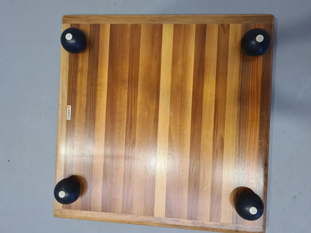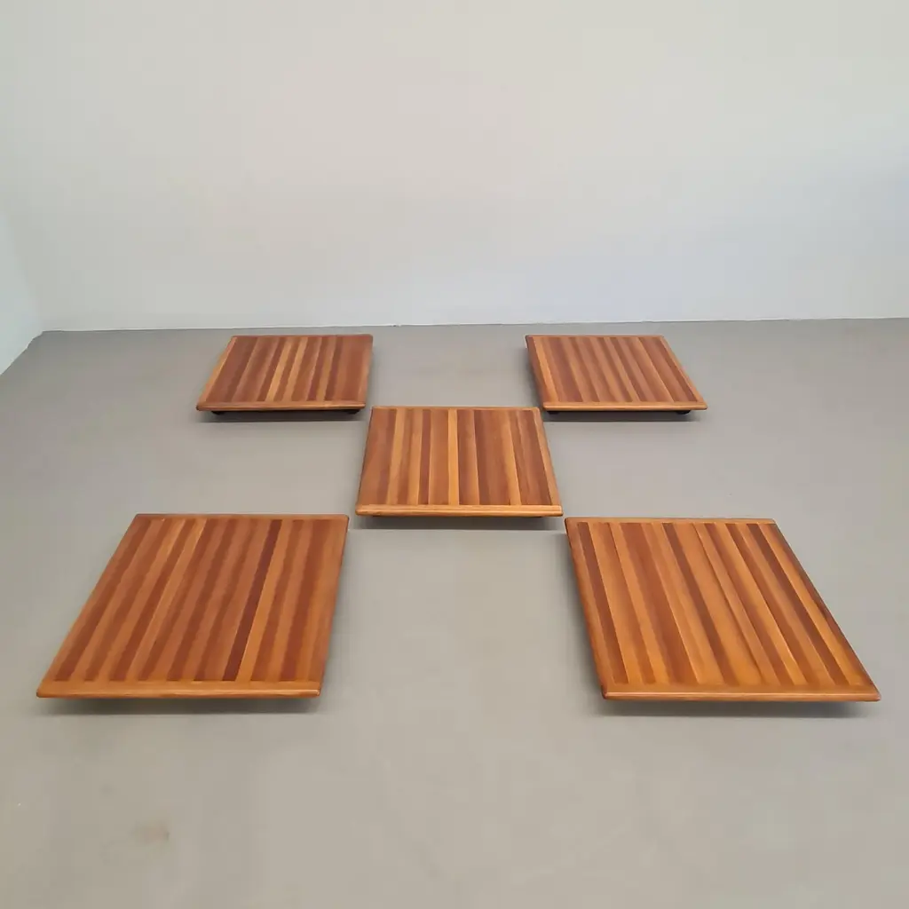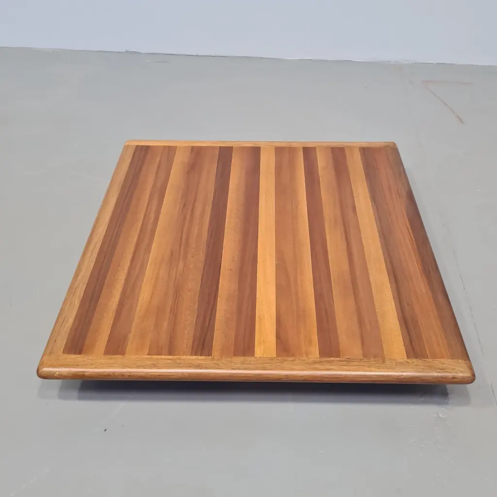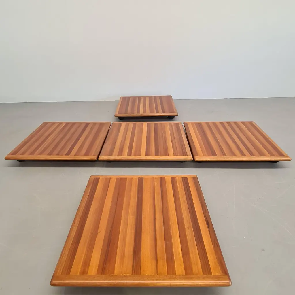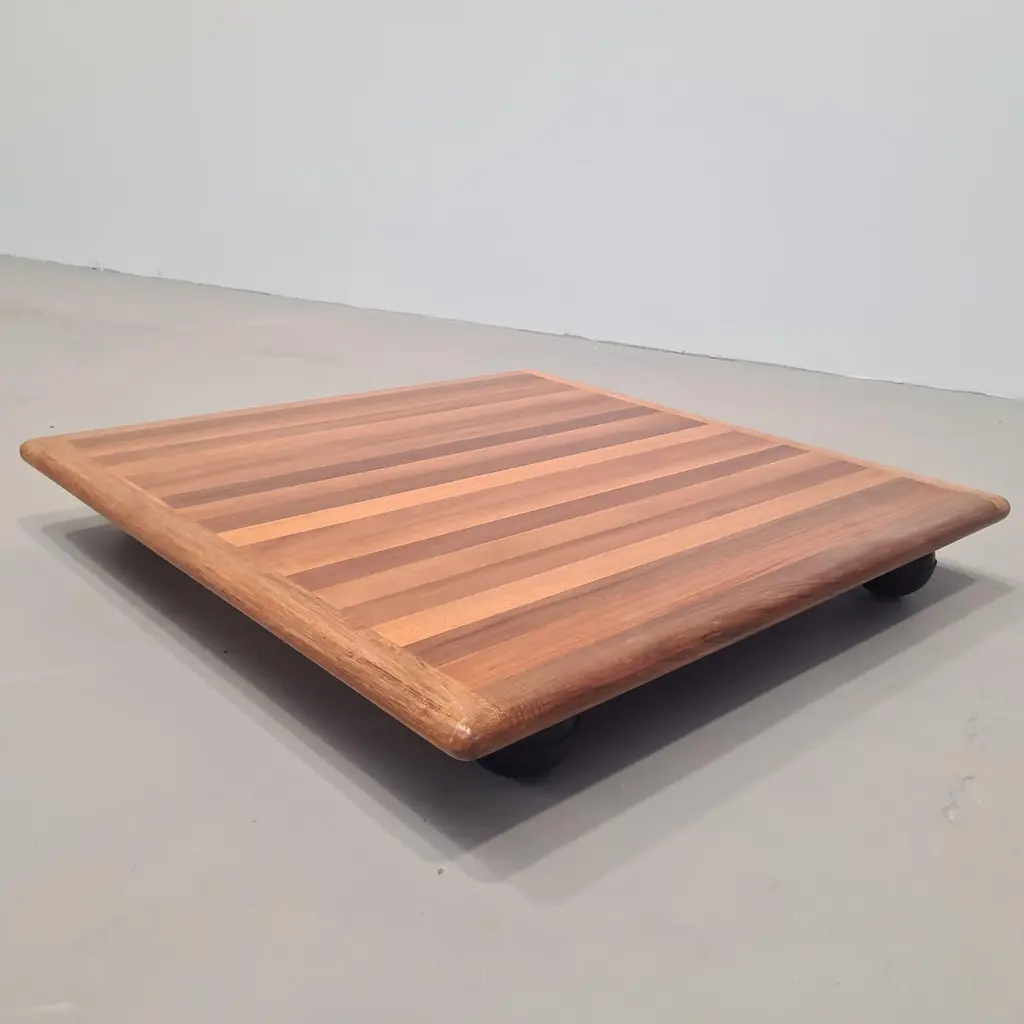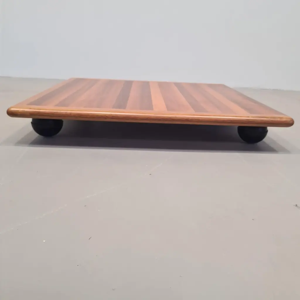 Wooden coffee table belonging to the Pianura collection designed in the 1970s by Mario Bellini for Cassina. Side tables are used to complement sofas and living rooms, and given the characteristic Japanese-style height also lends itself as a lamp stand in the living room sonaparticularly fine wooden workmanship with rubber feet.multiple pieces available