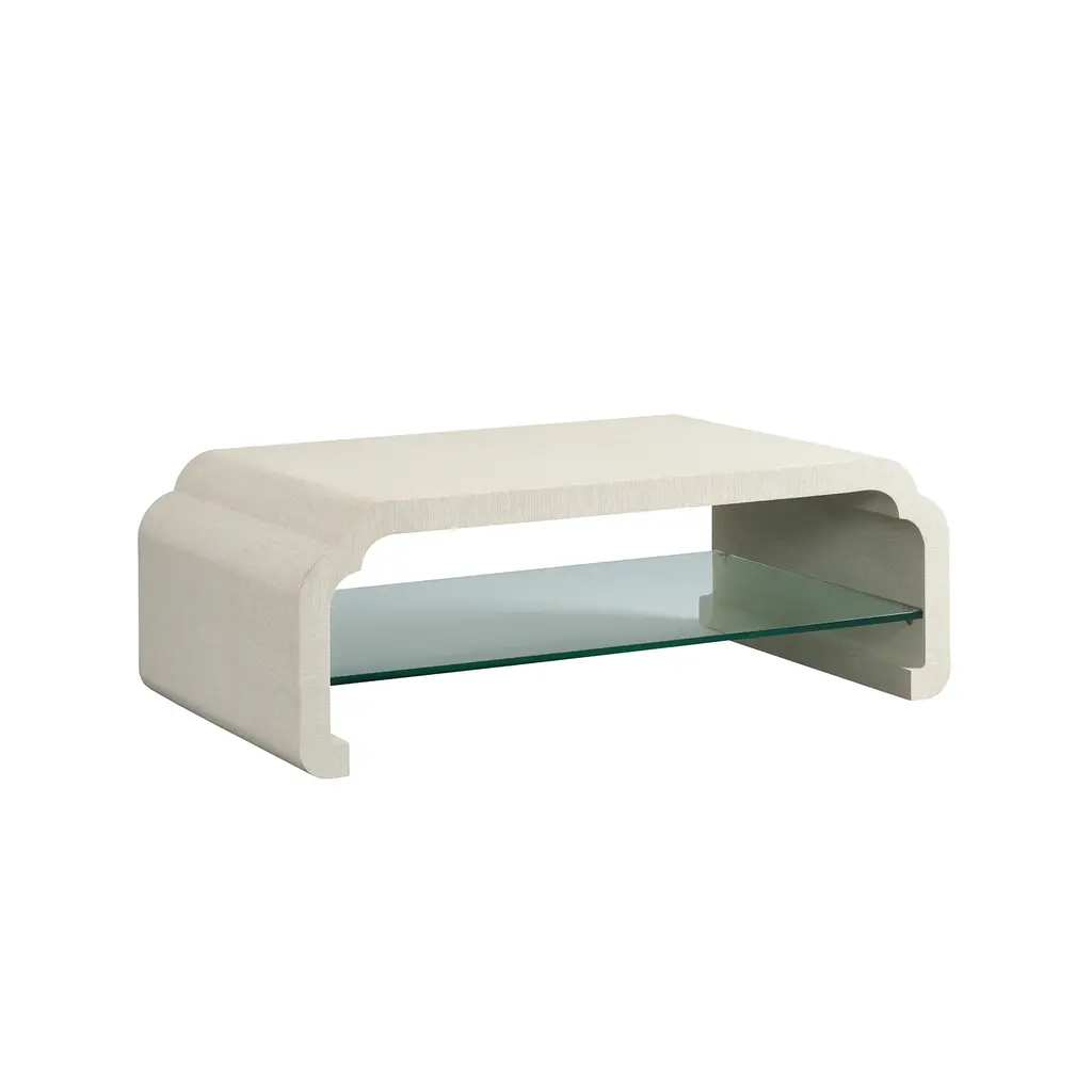 The Pietra Coffee Table takes a clean-lined silhouette and infuses it with unexpected character. Its waterfall form flows effortlessly into shaped side cutouts, giving a nod to retro design with a crisp, modern finish. A glass shelf floats below the top, offering extra surface space without adding visual weight. Pietra is both inviting and refreshingly bold—a centerpiece that feels as easygoing as it is refined. In Stock Mid February 2026 Glass shelf Linen wrapped frame This image is for illustrative purposes only. The colors shown are accurate within the constraints of lighting, photography, and the color accuracy of your screen.