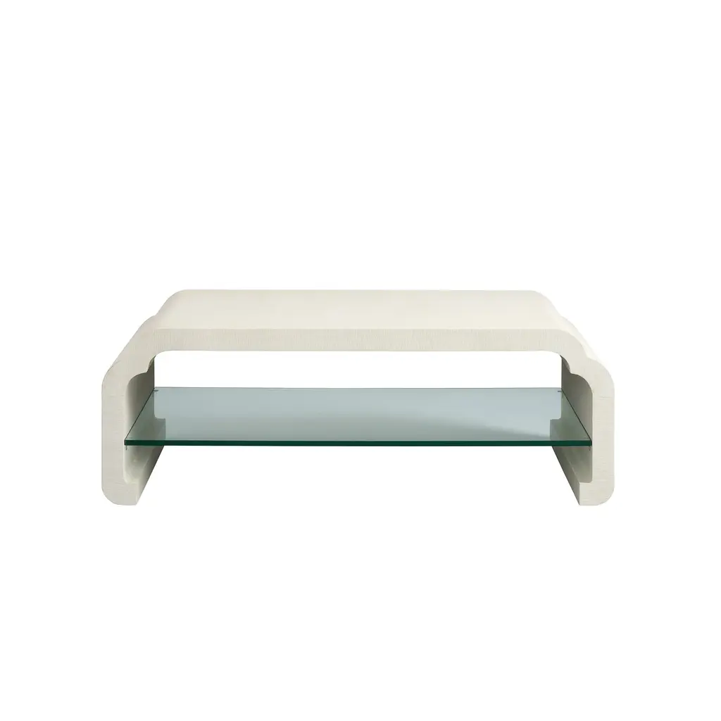 The Pietra Coffee Table takes a clean-lined silhouette and infuses it with unexpected character. Its waterfall form flows effortlessly into shaped side cutouts, giving a nod to retro design with a crisp, modern finish. A glass shelf floats below the top, offering extra surface space without adding visual weight. Pietra is both inviting and refreshingly bold—a centerpiece that feels as easygoing as it is refined. In Stock Mid February 2026 Glass shelf Linen wrapped frame This image is for illustrative purposes only. The colors shown are accurate within the constraints of lighting, photography, and the color accuracy of your screen.