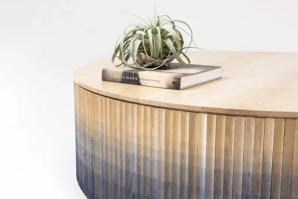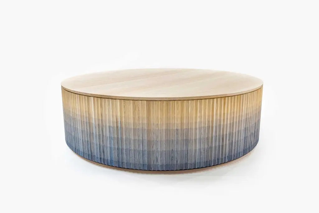 Pilar coffee table by INDO-One of a kindDimensions: Ø132.1 X H38.1 cm Materials: Oak with Cobalt Blue ombre finish.Also available in other colors and materials.Each piece is carefully handcrafted by our team using natural materials and traditional processes. Slight variations may occur. INDO- is an award winning interdisciplinary design studio based in Providence, RI. Founded in 2018 by Urvi Sharma and Manan Narang - both grew up in New Delhi and met at the Rhode Island School of Design - INDO- is a product of experiencing both places and cultures. Using a blend of craft and narrative in our creative process, we aim to share the rich cultural and historical identity we bring with us as Indian designers in the rapidly changing landscape of American design. With a focus on re-contextualizing traditional techniques from different disciplines of art and craft into our work, INDO- creates contemporary objects that celebrate the handmade and acknowledge the people and places that inspired them.