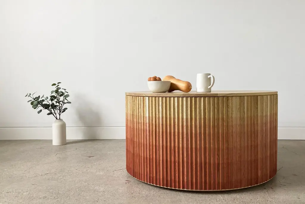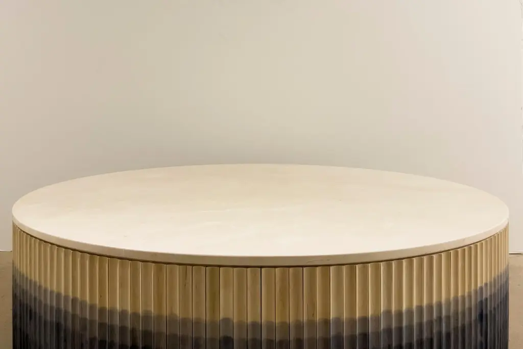 Made of solid American hardwoods, the Pilar Coffee, Occasional and End Tables provide both functionality and character in spaces such as a living room or hotel/office lobbies. With the ability to work in clusters or by themselves, they serve a wide range of demands, from accent to statement pieces. Apart from the standard colors, they can be made in a range of customized colors to stay in line with a brand identity and stone tops for high traffic zones. Inspired by our travels to Barcelona, the intense, bold use of color by Gaudi in his architectural mosaics alongside the rich, earthy glazes of Catalan ceramics, we aim to create the same feeling of warmth and wonder through the pieces in the Pilar Collection. From afar, the layered hues mimic a mosaic, with each tile of color representing a piece of the complete picture. Recontextualizing the process of dipping and layering glazes on ceramics alongside the tactility of its fluted wooden surface, the Pilar Collection invites you to come closer, discovering moments of color and intensity particular to each flute as they create a constant dialogue of light and shadow. The Pilar Collection is a nod to simple, functional, contemporary design with a beauty inherent in the handmade.