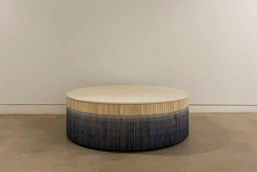 Pilar Round Coffee Table Large/ Blue Ombré Maple Wood, Crema Marble Top By Indo-