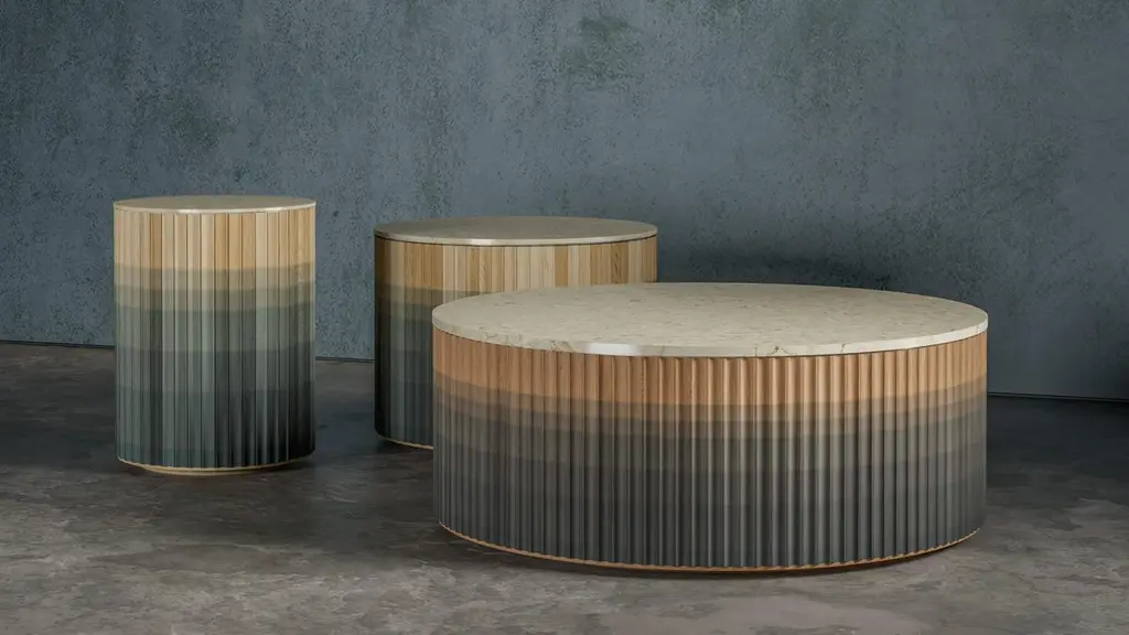 Made of solid American hardwoods, the Pilar Coffee, Occasional and End Tables provide both functionality and character in spaces such as a living room or hotel/office lobbies. With the ability to work in clusters or by themselves, they serve a wide range of demands, from accent to statement pieces. Apart from the standard colors, they can be made in a range of customized colors to stay in line with a brand identity and stone tops for high traffic zones. Inspired by our travels to Barcelona, the intense, bold use of color by Gaudi in his architectural mosaics alongside the rich, earthy glazes of Catalan ceramics, we aim to create the same feeling of warmth and wonder through the pieces in the Pilar Collection. From afar, the layered hues mimic a mosaic, with each tile of color representing a piece of the complete picture. Recontextualizing the process of dipping and layering glazes on ceramics alongside the tactility of its fluted wooden surface, the Pilar Collection invites you to come closer, discovering moments of color and intensity particular to each flute as they create a constant dialogue of light and shadow. The Pilar Collection is a nod to simple, functional, contemporary design with a beauty inherent in the handmade.