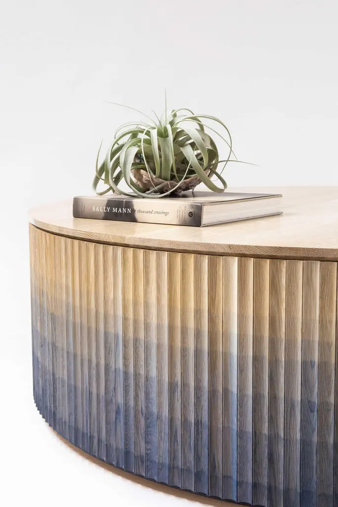 Pilar Round Coffee Table Large / Cobalt Blue Ombré On Oak Wood By Indo-
