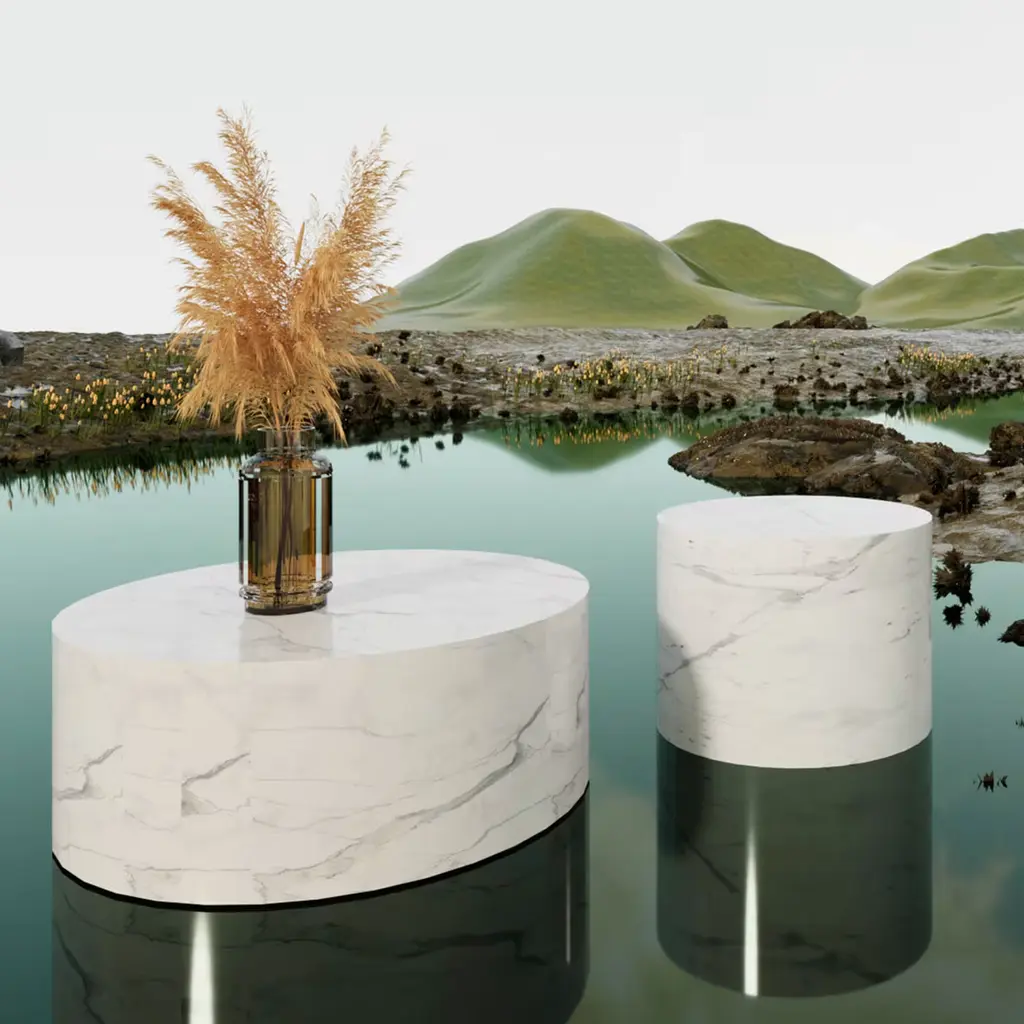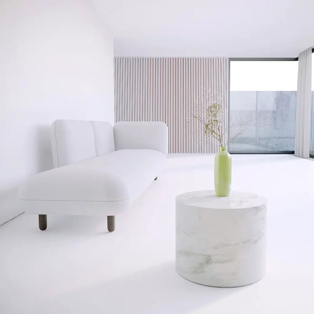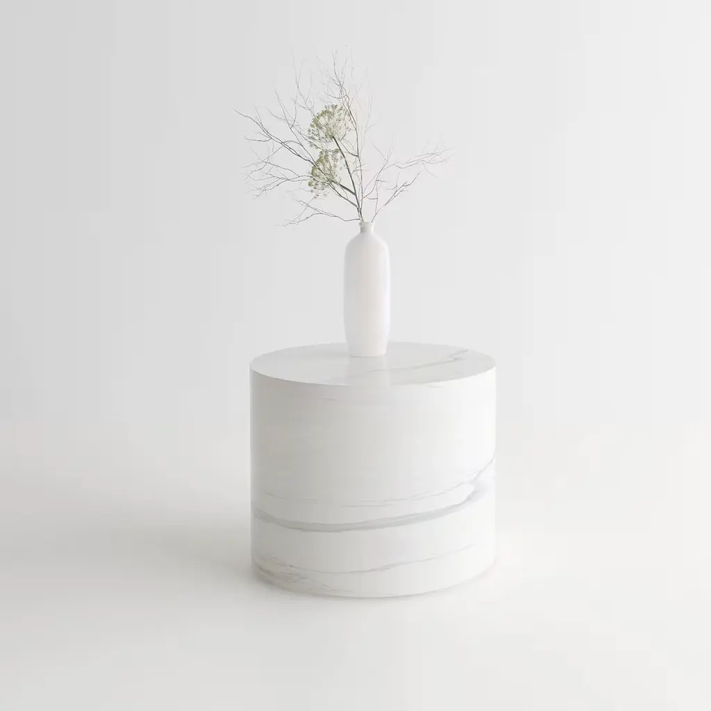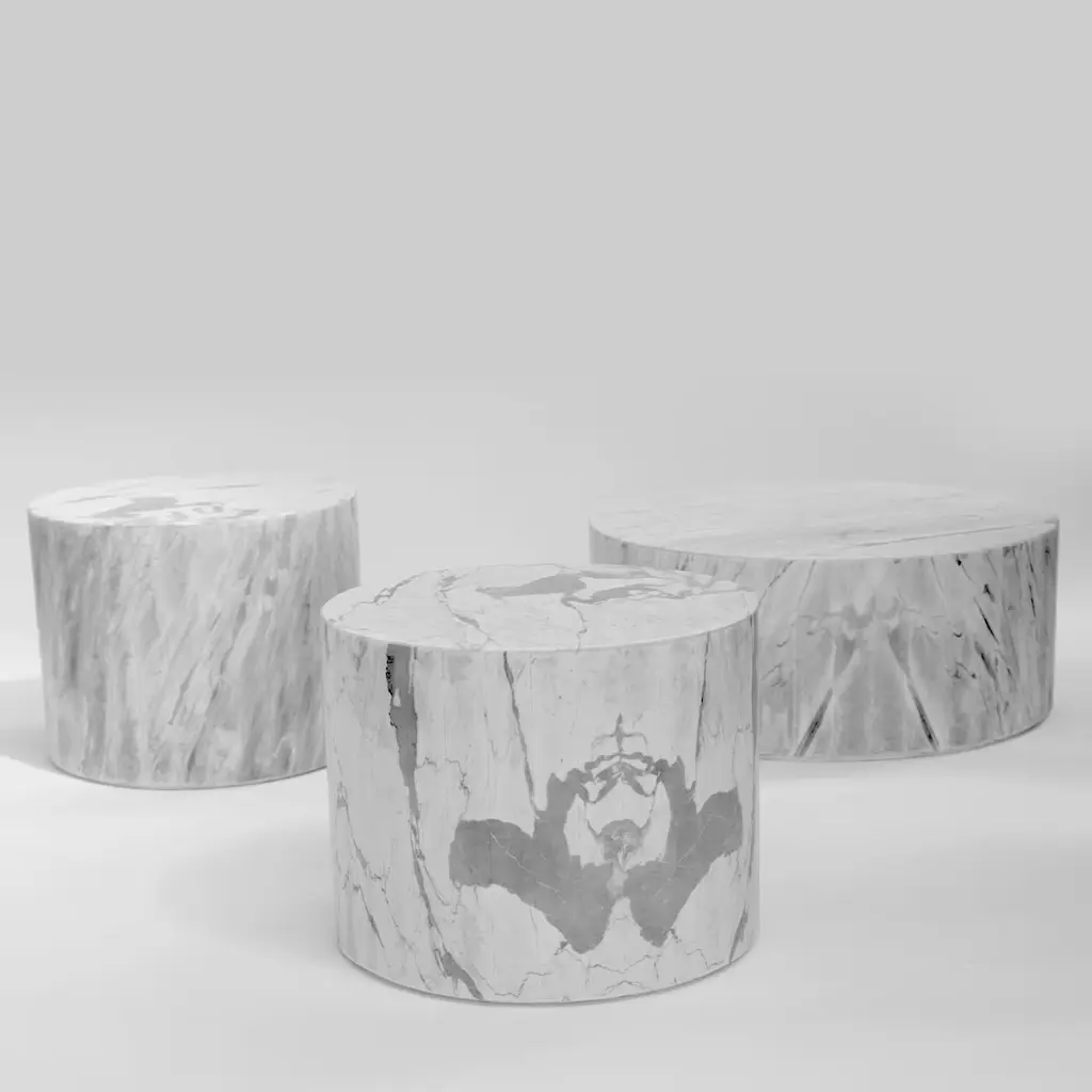 This superb coffee table takes advantage of its cylindrical design to emphasize the characteristic veins of Carrara marble. The natural stone is here featured in its lightweight variant, offering functional decor that is as minimal as it is cutting-edge. Superb for terraces, pool areas, and contemporary interiors. Customization options are available, please contact the Concierge.