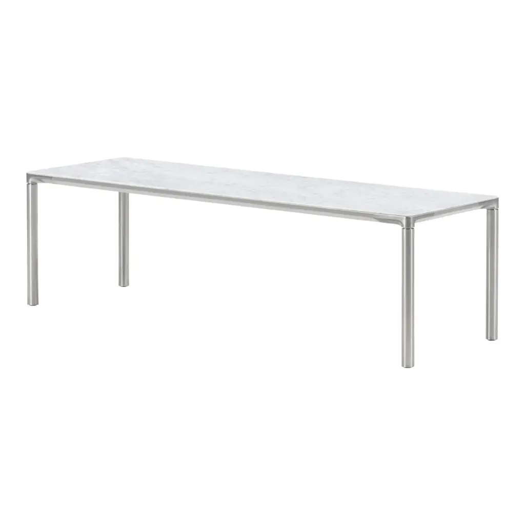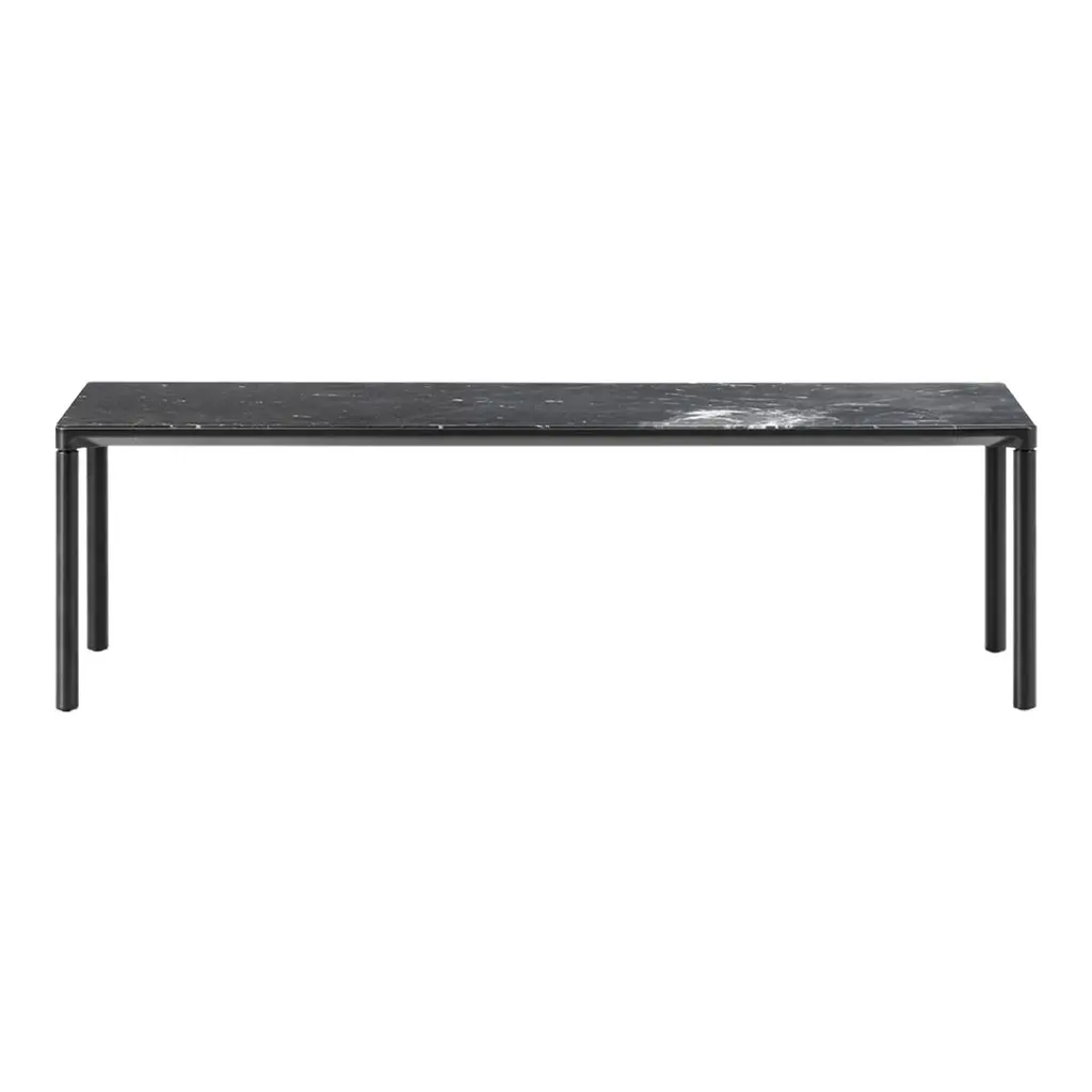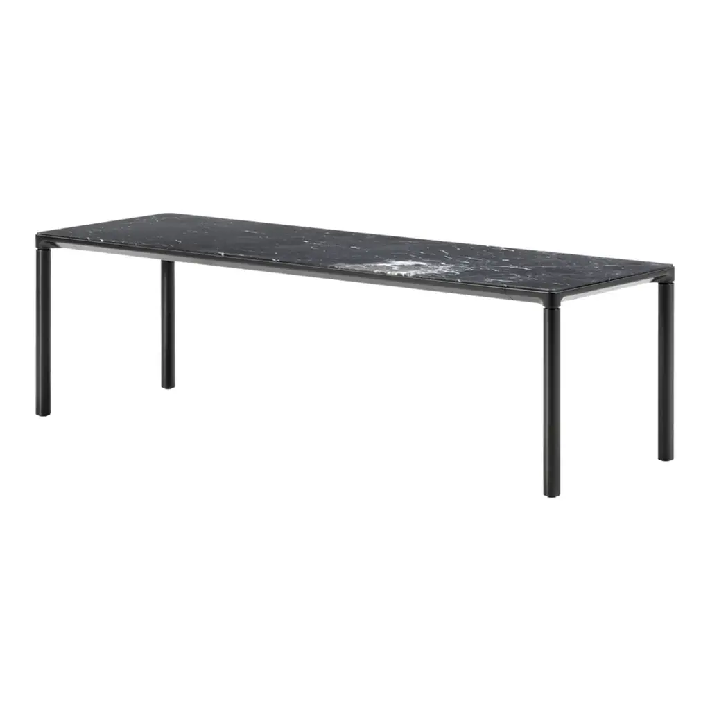 Piloti is a series of solid oak or aluminum side tables. The subtle detailing of the table top creates the impression of a single line, floating between four delicate legs. The tables are supplied in two heights and can be combined as a nest.