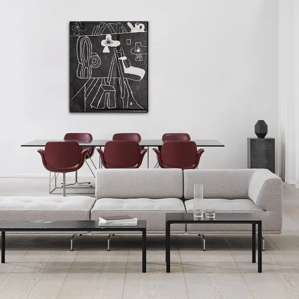 Piloti is a series of solid oak or aluminum side tables. The subtle detailing of the table top creates the impression of a single line, floating between four delicate legs. The tables are supplied in two heights and can be combined as a nest.
