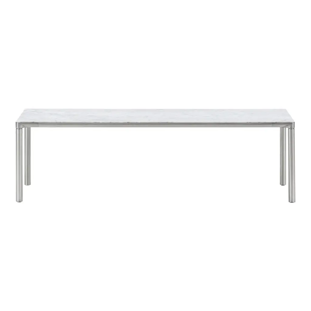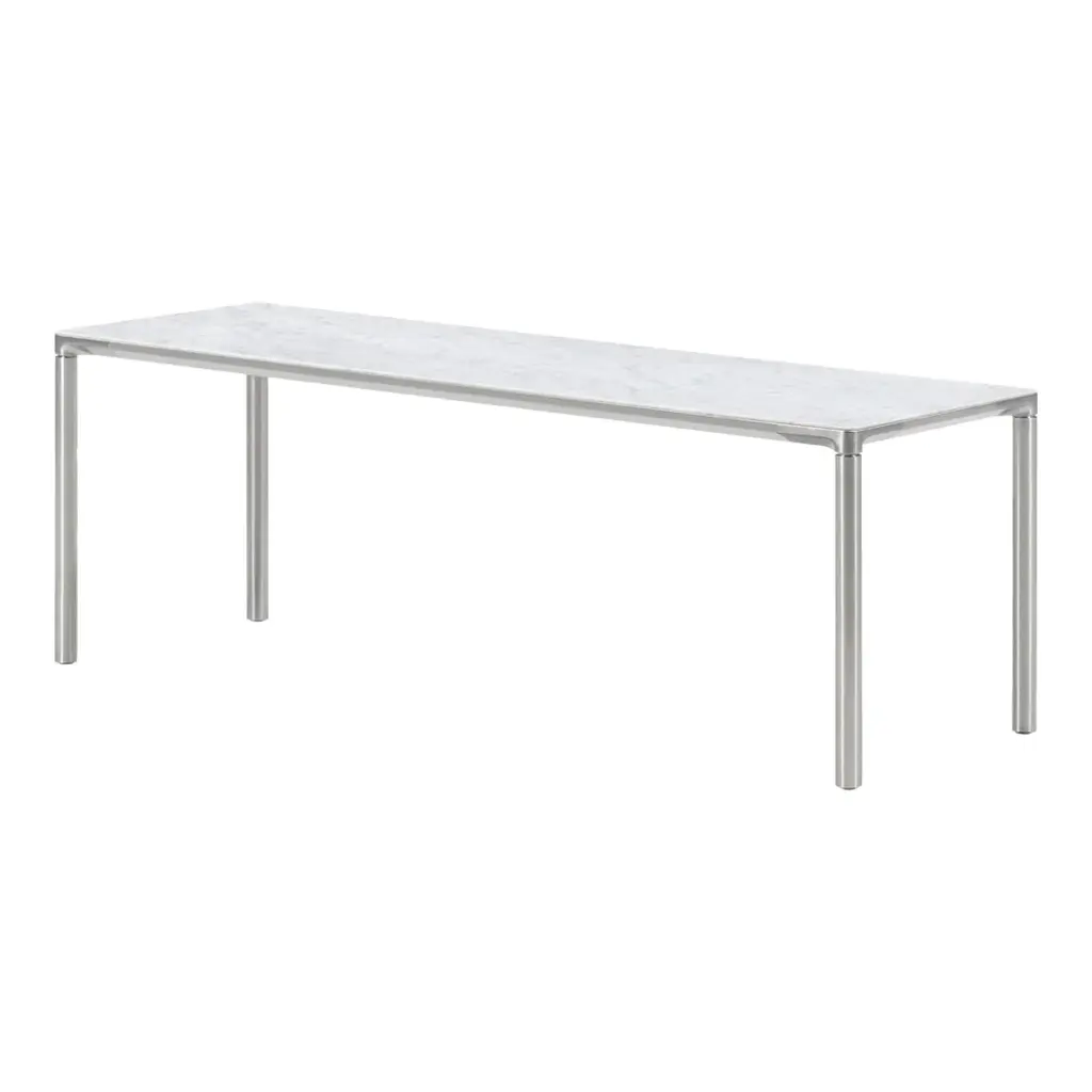 Piloti is a series of solid oak or aluminum side tables. The subtle detailing of the table top creates the impression of a single line, floating between four delicate legs. The tables are supplied in two heights and can be combined as a nest.