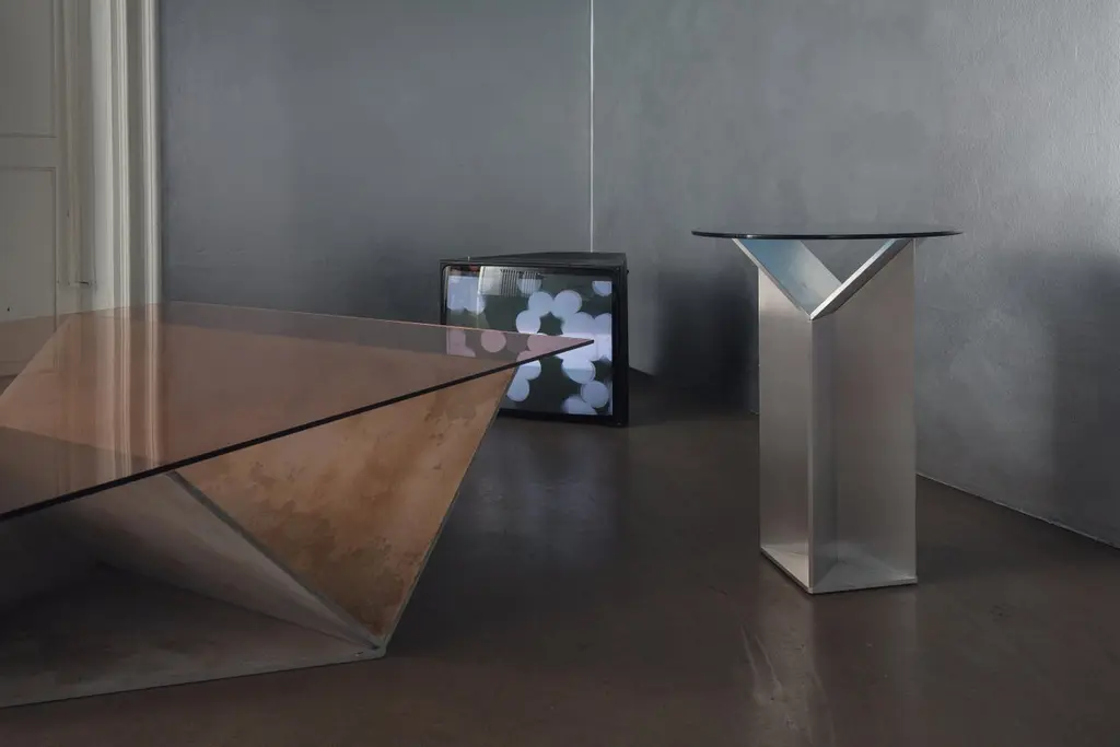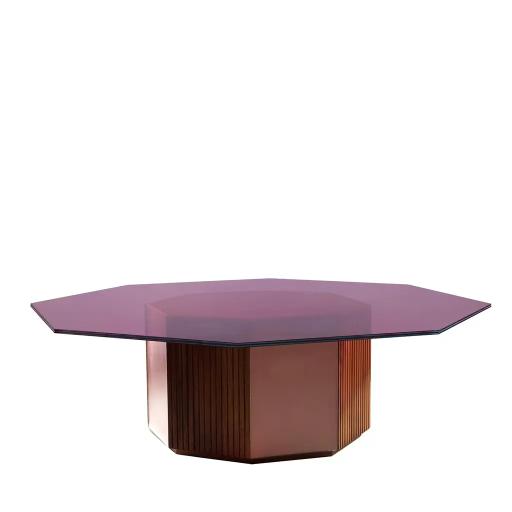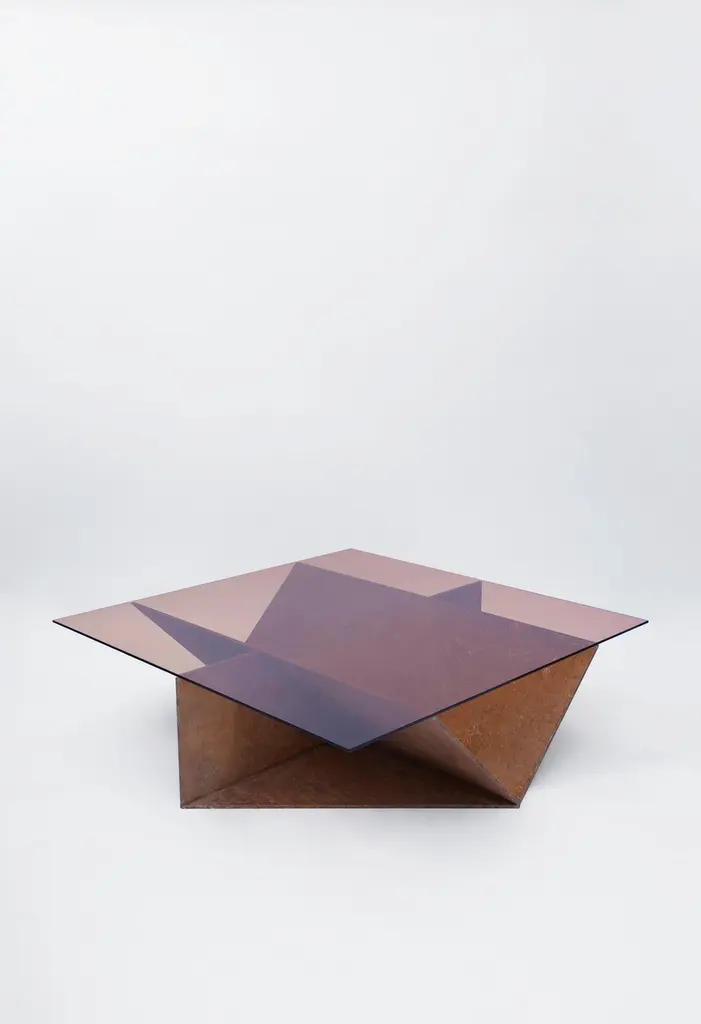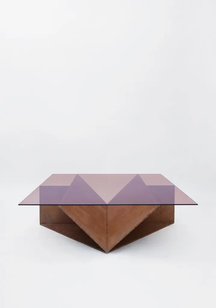 Pinac low coffee table by OeufficeEdition: 12 + 2AP2015Materials: Aluminium, tempered glassDimensions: L 130 x W 130 x H 38 cmIt is possible to customize the objects with different finishes of aluminium (brushed, oxidized red, oxidized blue and polished mirror) with a selection of crystal tempered tops (peach, grey, blue and yellow).Oeuffice was founded in 2011 as a collaboration between Nicolas Bellavance-Lecompte and Jakub Zak. After many years of a parallel life between Canada, Berlin and Milan, they united to form Oeuffice, a new research laboratory with a focus on developing innovative objects of limited edition. Their work reflects a common ideal of creating objects inspired by visions of a contemporary utopia and has been exhibited internationally with various galleries including Phillips de Pury in London, R20th in New York, Dimore Gallery in Milan and Carwan Gallery in Beirut.