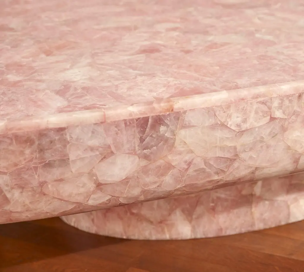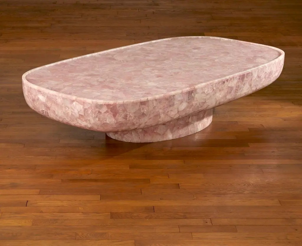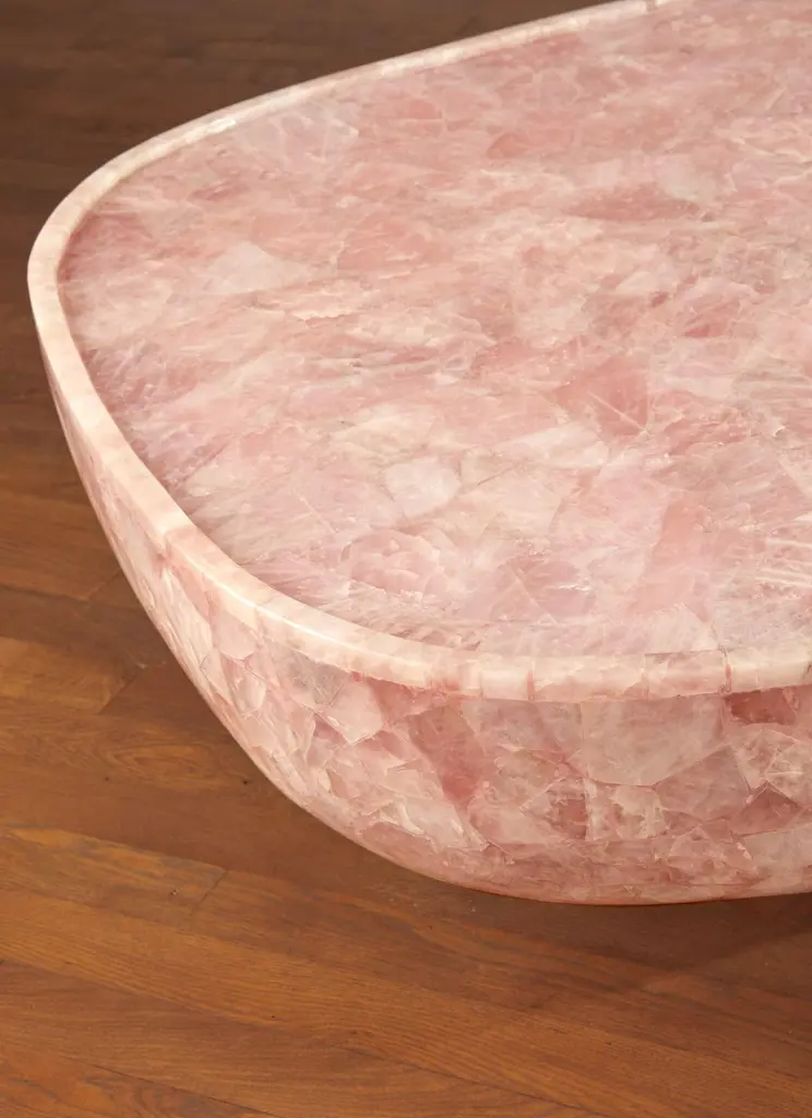 Superb coffee table in sculpted pink quartz.Creation by Studio Glustin.France, 2023.