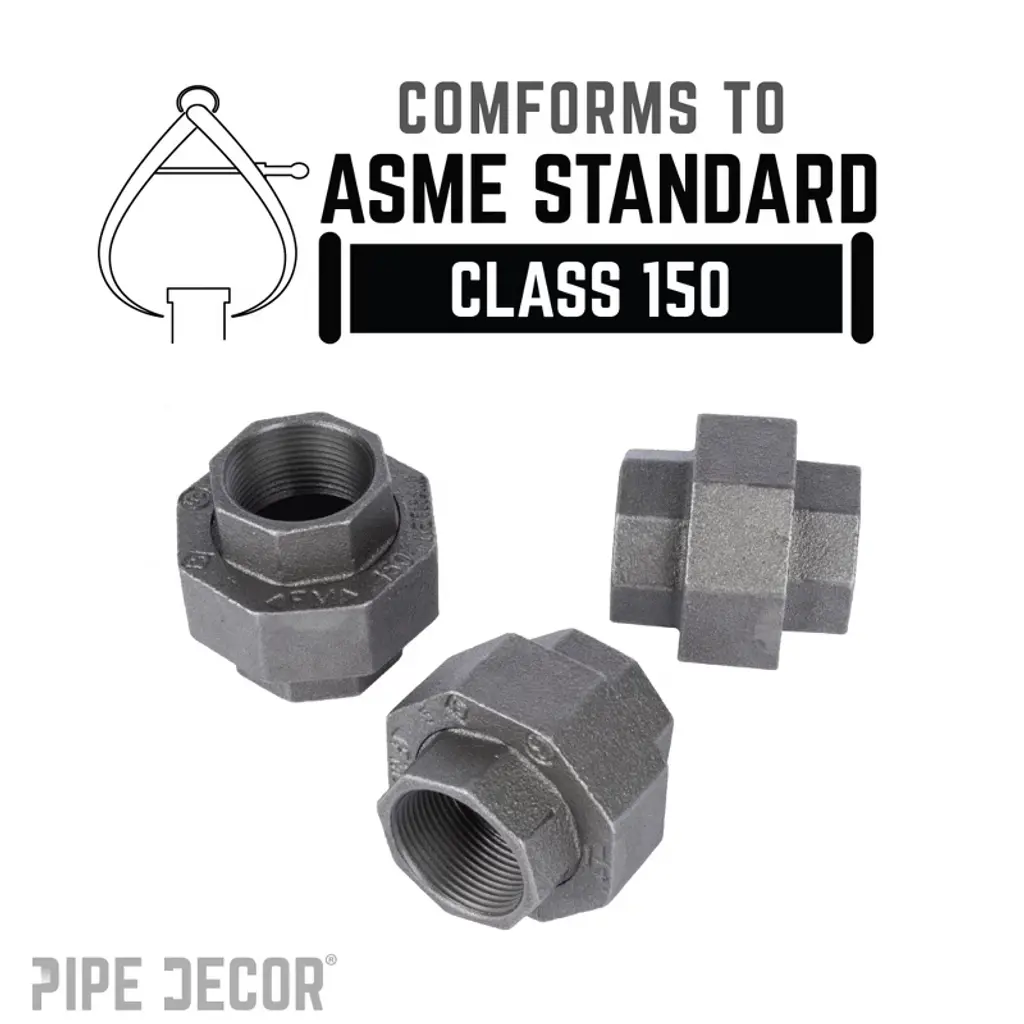 Add an industrial edge to your DIY projects with a union fitting. This piece allows for sophisticated pipe design by enabling you to create a perfect loop, as seen in our Loop coffee table. Without the union, it would be impossible to fully connect a loop of pipe. Our fittings are made from durable, industrial-grade malleable iron. They are 100% authentic and built to stand the test of time. You will know PIPE DECOR parts and accessories when you hold them—beauty and beast, strength and style. These are real industrial fittings for your decorations and designs. Accept no substitutes. Extra pieces and accessories are available for your custom projects and expansions. Plug and play as desired. Perfect for any DIY project, our iron fittings complement a variety of looks and aesthetics, including steampunk lighting, industrial, factory, French country farmhouse, vintage, retro, reclamation, DIY customized, modern, and more. We recommend cleaning and sealing each fitting before use. IPS threads offer compatibility with other project materials such as lamp parts, valves, and more. They are compatible with any pipes, fittings, and PIPE DECOR furniture kits.