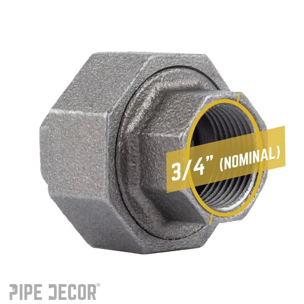 Add an industrial edge to your DIY projects with PIPE DECOR unions. These fittings allow for sophisticated pipe designs, enabling you to create a perfect loop, as seen in our Loop coffee table, which would be impossible to fully connect without a union. Crafted from durable, industrial-grade malleable iron, each fitting is 100% authentic and built to stand the test of time. You’ll know genuine PIPE DECOR parts the moment you hold them—beauty and beast, strength and style combined. These real industrial fittings are designed for your decorations and designs, with extra pieces and accessories available for custom projects and expansions, allowing you to plug and play as desired. Our iron fittings complement a wide range of aesthetics, including steampunk lighting, industrial, factory, French country farmhouse, vintage, retro, reclamation, DIY customized, modern, and more. Each fitting features IPS threads for compatibility with other project materials such as lamp parts, valves, and additional PIPE DECOR components. We recommend cleaning and sealing each piece before use. All fittings are fully compatible with any pipes, fittings, and PIPE DECOR furniture kits.