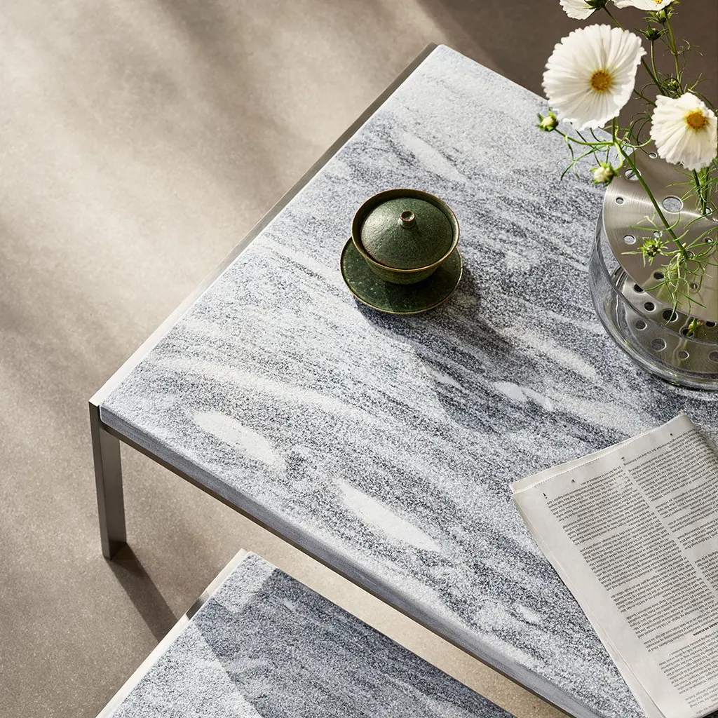 The PK63 is a side table / coffee table designed by Poul Kjaerholm in 1968. It features a satin brushed stainless steel base and is available in three different table tops. For a smaller version, see the PK63A.