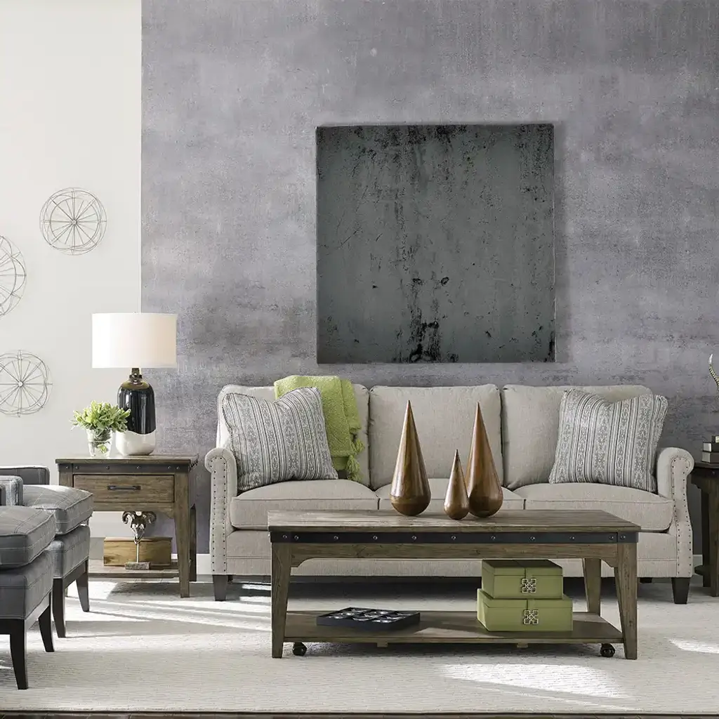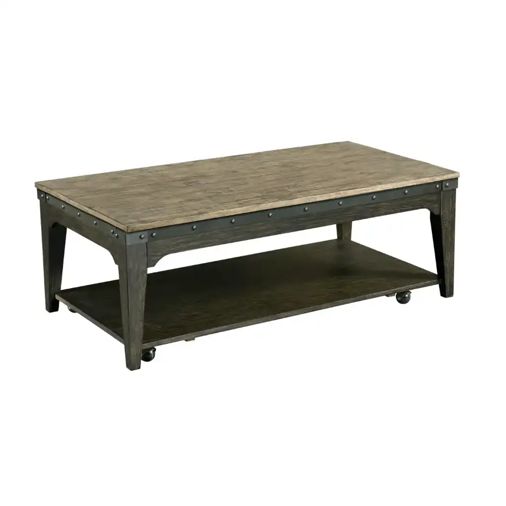 The Artisans Rectangular Cocktail Table from the Plank Road Collection brings rustic charm and versatility to your living space. Crafted from genuine New Zealand Pine, this solid wood piece showcases the natural beauty of its grain, telling a story of craftsmanship and durability. The table's spacious top provides ample room for entertaining, while the lower shelf offers additional storage or display space for your favorite books and decor. Adding to its practicality, removable casters allow for easy mobility when needed, making it perfect for flexible living arrangements. With its warm tones and timeless design, this cocktail table seamlessly blends form and function, becoming a centerpiece that adapts to your lifestyle while infusing your home with a touch of artisanal elegance.