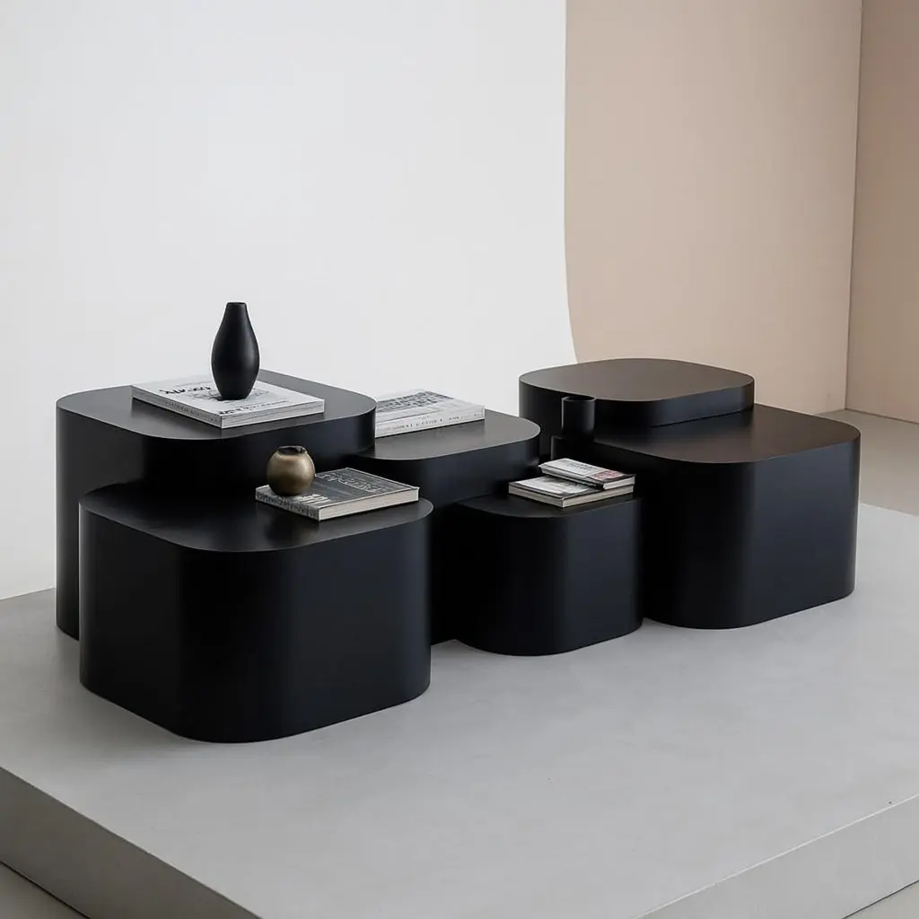 Platea Coffee TableInspired by the layered beauty of natural plateaus and stepped land formations, the Platea Coffee Table embodies an architectural landscape in motion. Each block represents a unique elevation, creating a sculptural topography that mimics how nature builds over time — one layer at a time.The staggered arrangement of lacquered cubes forms a rhythmic composition, inviting the eye to travel across each level. Like geological layers shaped by wind and time, the interplay of varying heights and finishes reflects a balance between order and organic imperfection.The result is a functional art piece that grounds a room while telling a story of movement, terrain, and elemental balance.We will be glad to check with the factory’s technical team if sizes, finishes, and colors can be customized.We do our best to expedite production and to ship and deliver product within the listed lead time, however current lead times might be longer due to global shipping backlog and delays. These delays are out of our control and cannot be a reason to cancel an order.