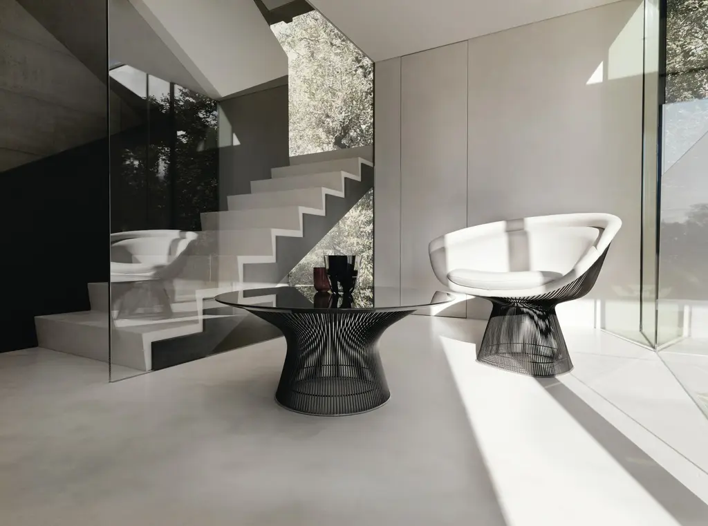 In 1962, Warren Platner approached Knoll with an idea. It was a difficult design, requiring precise alignment to ensure the bent steel rods were both structurally sound and visually pleasing. Four years later, this graceful masterpiece made its debut.In the 1960s, Warren Platner saw an opportunity. “I felt there was room for the kind of decorative, gentle, graceful kind of design that appeared in period style like Louis XV, but it could have a more rational base instead of being applied decoration,” he said. By welding hundreds of curved steel rods to circular frames, Platner achieved his goal to create a form that simultaneously serves as structure and ornament. His iconic coffee table has been a celebrated focal point in living rooms since 1966.
