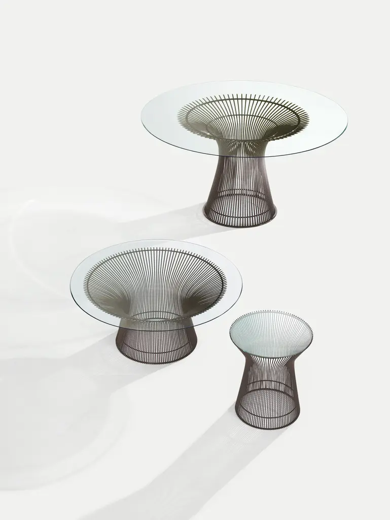 In 1962, Warren Platner approached Knoll with an idea. It was a difficult design, requiring precise alignment to ensure the bent steel rods were both structurally sound and visually pleasing. Four years later, this graceful masterpiece made its debut.In the 1960s, Warren Platner saw an opportunity. “I felt there was room for the kind of decorative, gentle, graceful kind of design that appeared in period style like Louis XV, but it could have a more rational base instead of being applied decoration,” he said. By welding hundreds of curved steel rods to circular frames, Platner achieved his goal to create a form that simultaneously serves as structure and ornament. His iconic coffee table has been a celebrated focal point in living rooms since 1966.
