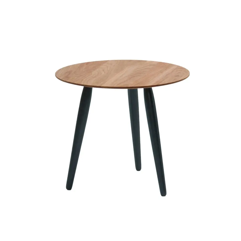 PLAYround are round coffee tables and come in five different sizes and four different heights. We produce the tables in two types of solid wood, European oak and American walnut. The table plates come in white laminate as well. The American walnut surface is always treated with natural oil, while we supply oak treated with soap, natural oil, and white pigmented oil. Oak table legs are also available painted black. The different surfaces allow for exciting compositions. It is possible to put together a classic table all in oak, or a more interesting composition, for example a table with black painted legs and a table plate in oak treated with natural oil. The different heights, sizes and composition, make this table series a dream for everyone who loves interior design.