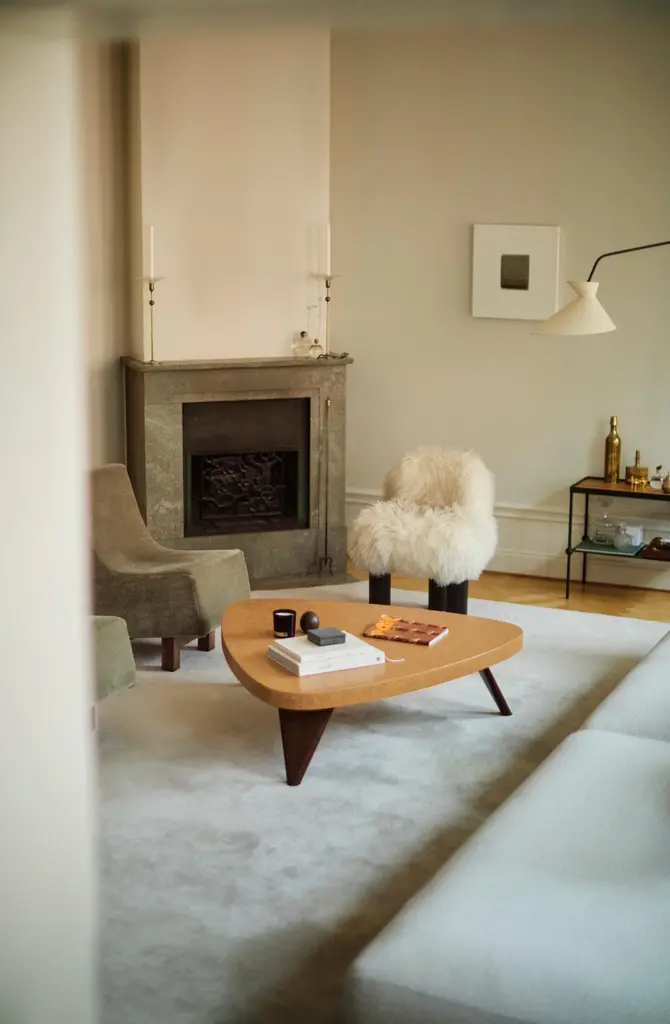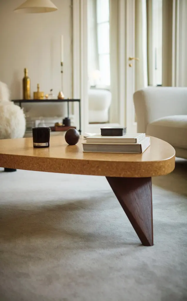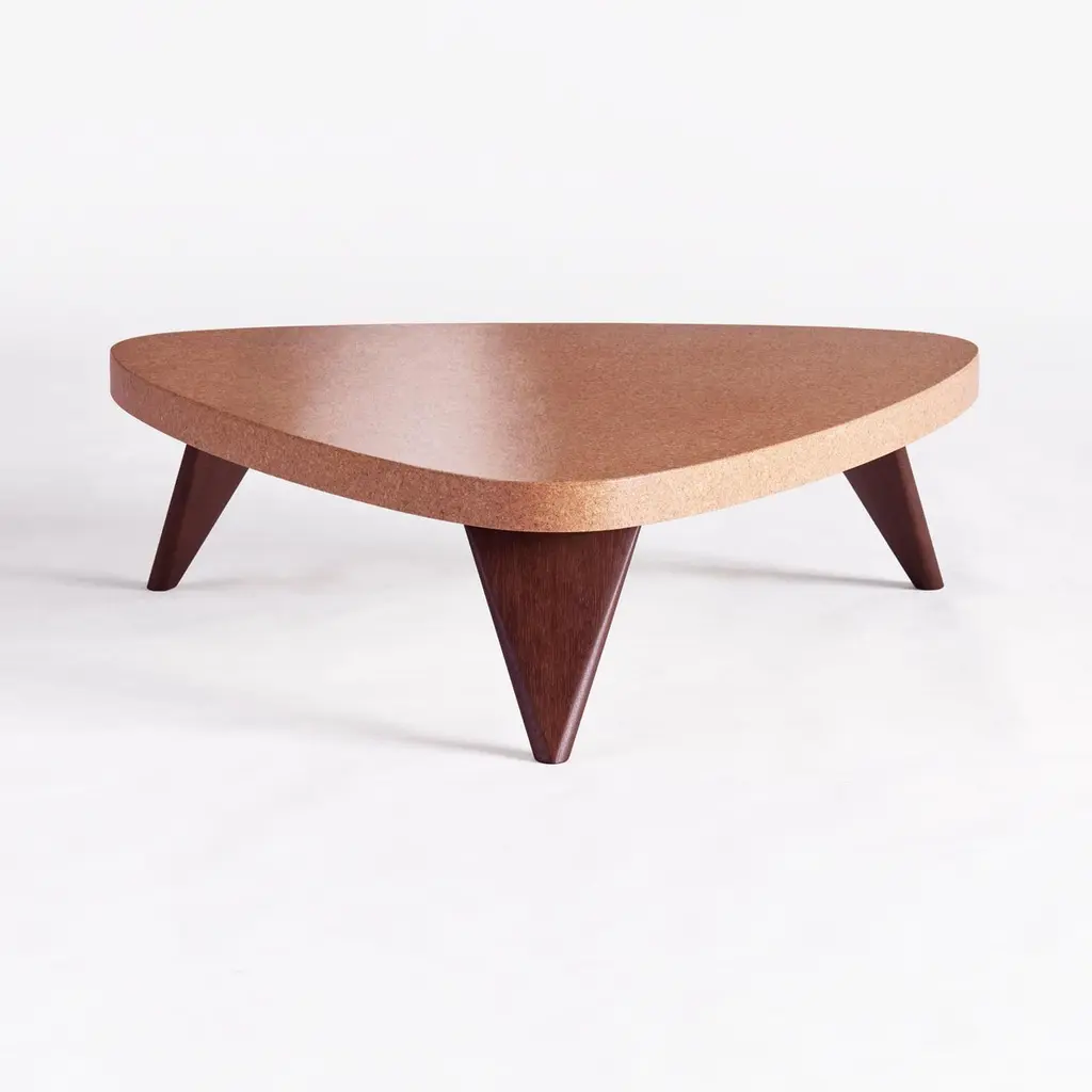 Paul T. Frankl (1886-1958) designed the Plectrum Coffee Table for the Michigan-based Johnson Furniture Company in the late 1940s. The low, cloud-shaped table was marketed as a “cocktail table,” a modernized version of the more classic coffee table. Frankl was one of the most recognized American furniture designers at the time, and good friends with many of the country's modernists such as Frank Lloyd Wright and Raymond Hood. The biomorphic shape of the Plectrum coffee table was likely inspired by Alvar Aalto, Kaare Klint and other Scandinavian designers, but Frankl added his own eccentric ideas, including a cork top and outward-facing legs, which not only gave the table better stability but also broke with conventional geometry. The result is one of the modernist icons of the mid-century, a design object that is informal and practical, and completely in tune with the times. The Plectrum Table is undoubtedly one of Paul T. Frankl's masterpieces, an enduring and visually commanding design.