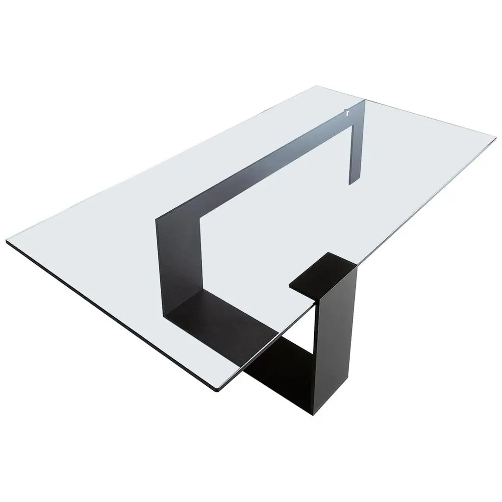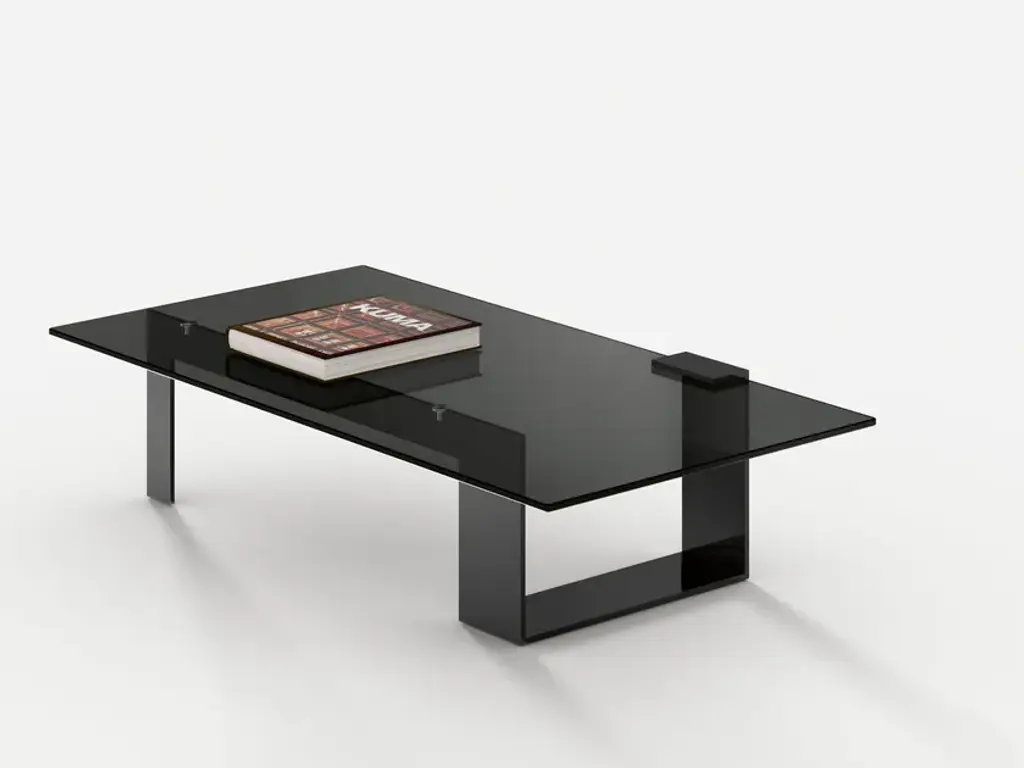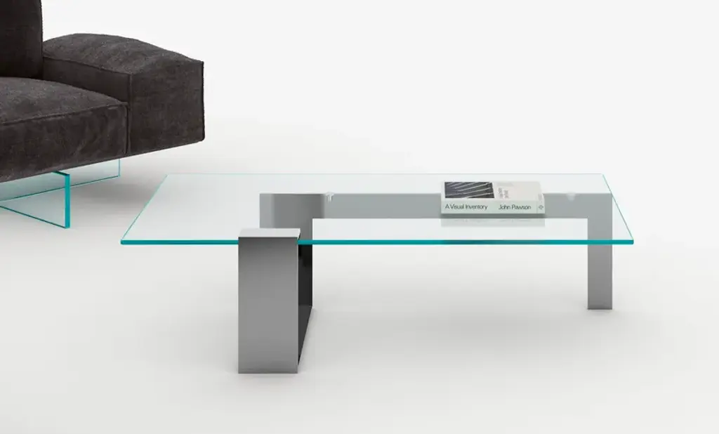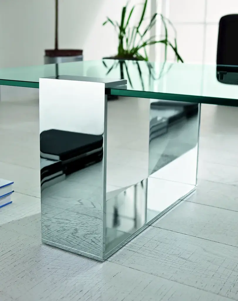 The chrome support unwinds itself under the tempered glass turning round till reaching the very top in an original and safe hooking. Size: 130 x 70 x h 33 cm Thickness: 12 mm Load: 30 kg