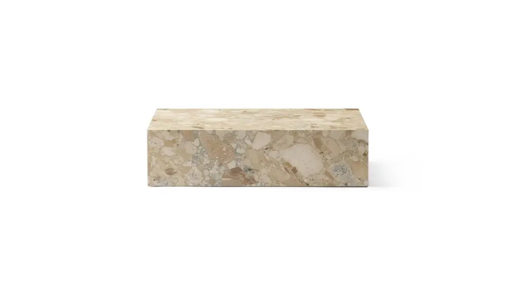 Versatile and timeless, the Plinth Low Coffee Table by Menu Design now Audo Copenhagen is beautiful, sculptural design that highlights whatever objects rest upon it. With no two pieces exactly alike, the naturalness of the marble creates an intriguing contrast within each piece. Perfect accenting a seating group, the spacious surface is ready to hold designer coffee table books, favorite candles, and decor pieces from your travels abroad.Highlights