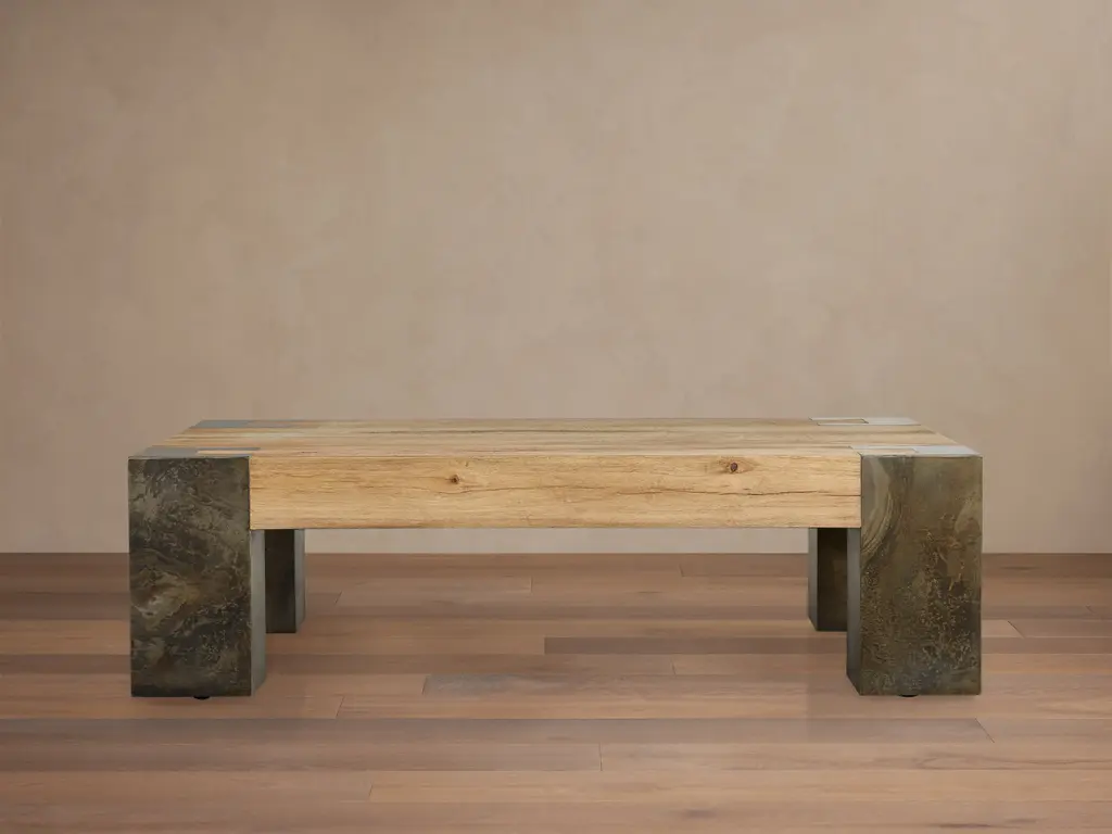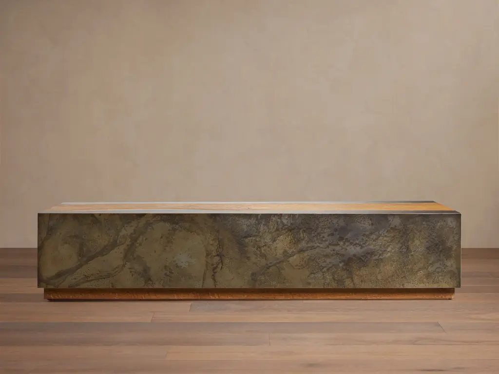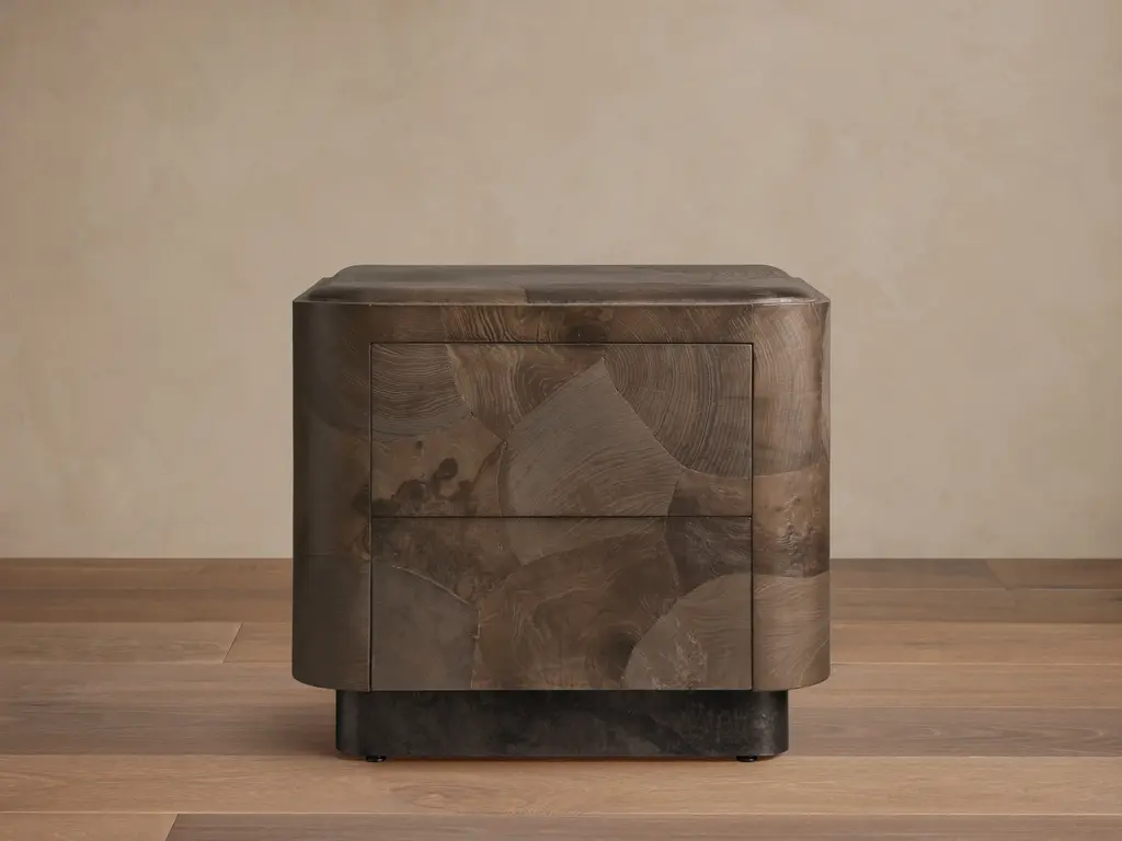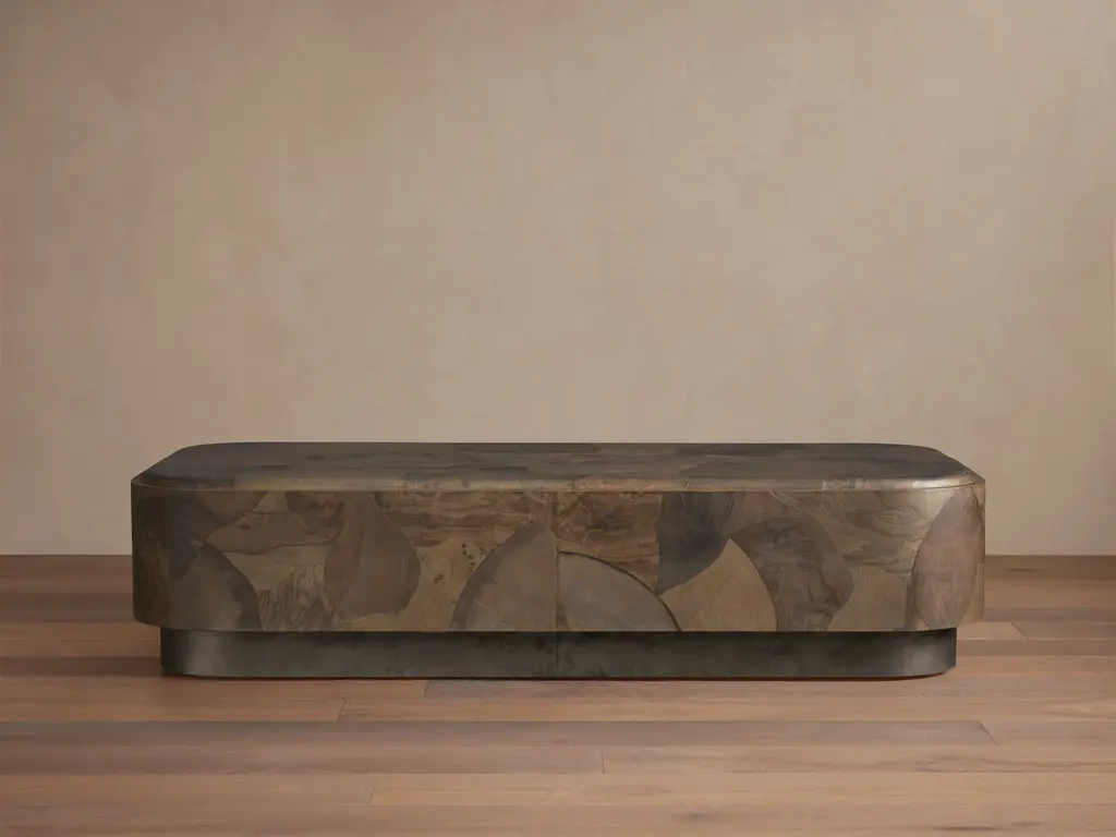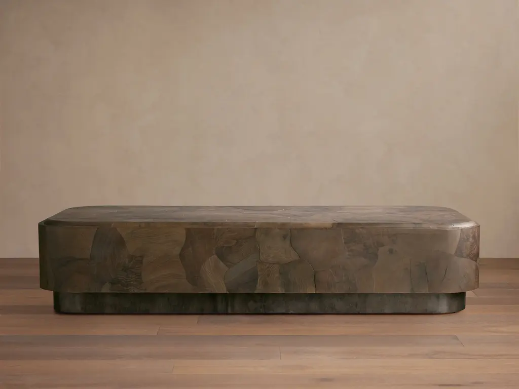 Following heavy storms, our artisan partners in Mexico search the forest for fallen trees of Mexican ash, salvaging as many as they can. Each log is oyster-cut, arranged, and stained by hand, united with fragments of sustainably grown European ash burl to create incredible, mosaic-like surfaces. Bases crafted from naturally oxidized metal add the perfect contrast, together forming the rustic beauty of our remarkable Polanco Collection.