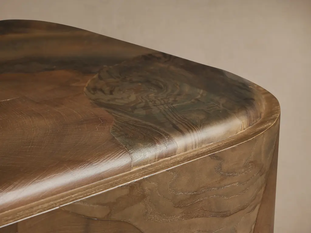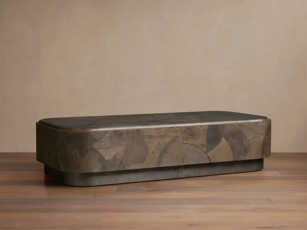 Following heavy storms, our artisan partners in Mexico search the forest for fallen trees of Mexican ash, salvaging as many as they can. Each log is oyster-cut, arranged, and stained by hand, united with fragments of sustainably grown European ash burl to create incredible, mosaic-like surfaces. Bases crafted from naturally oxidized metal add the perfect contrast, together forming the rustic beauty of our remarkable Polanco Collection.