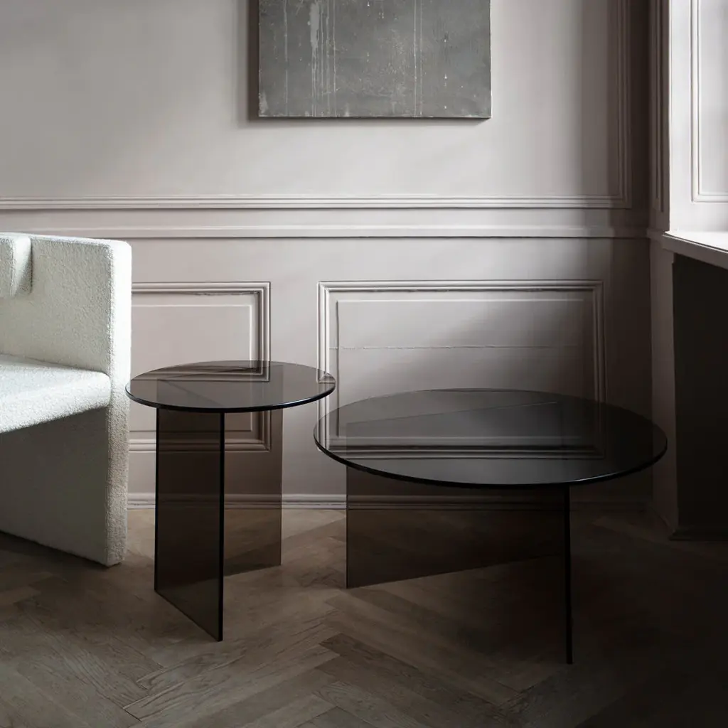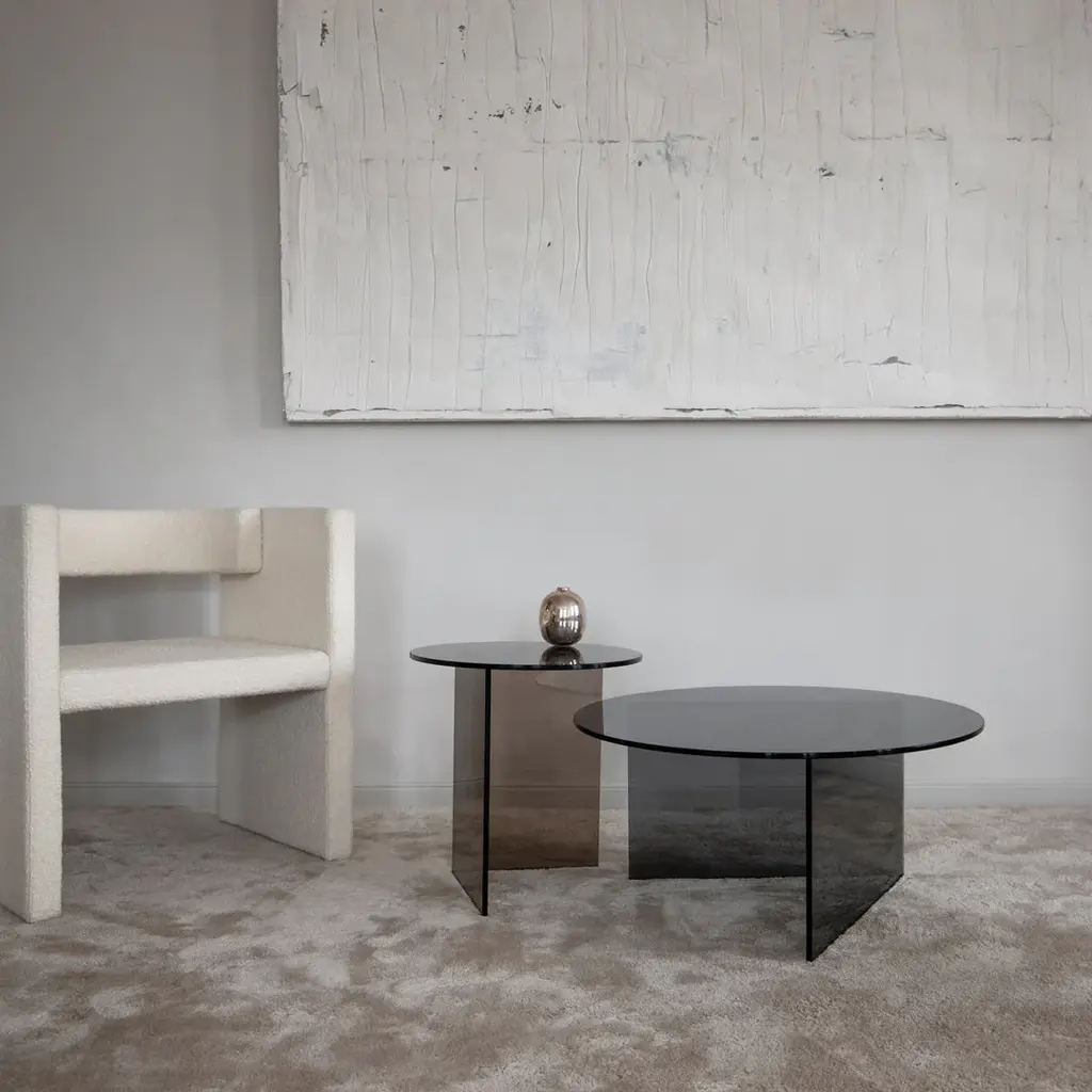 Coffee tables created to be placed as a set or solo. the design evolved from a fascination of reflections. the unexpected and non predefined shapes created by the reflections add new dimensions.