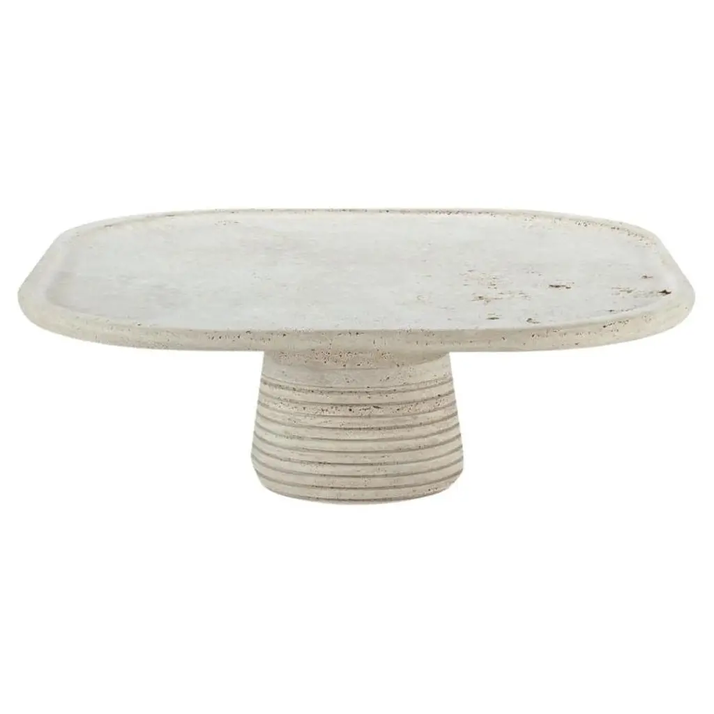 The Poppy Coffee Table is an elegant pedestal table with a combination of natural stones and lacquered finishes. Handmade with a solid stone base. Poppy tables are a finely tuned example of how we find elegance within the immediate flow of naturalism. Available in a number of different materials, finishes and combinations.MaterialsTop : marble estremoz or travertine, wood lacquered matteBase : marble estremoz, marble travertineDimensionsW 39” x D 39” x H 14”Pictured inMarble Travertine Top and Base.