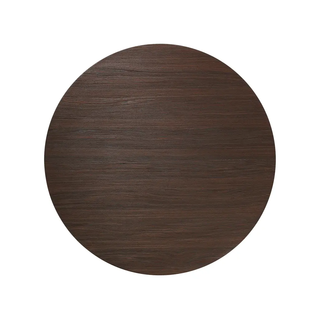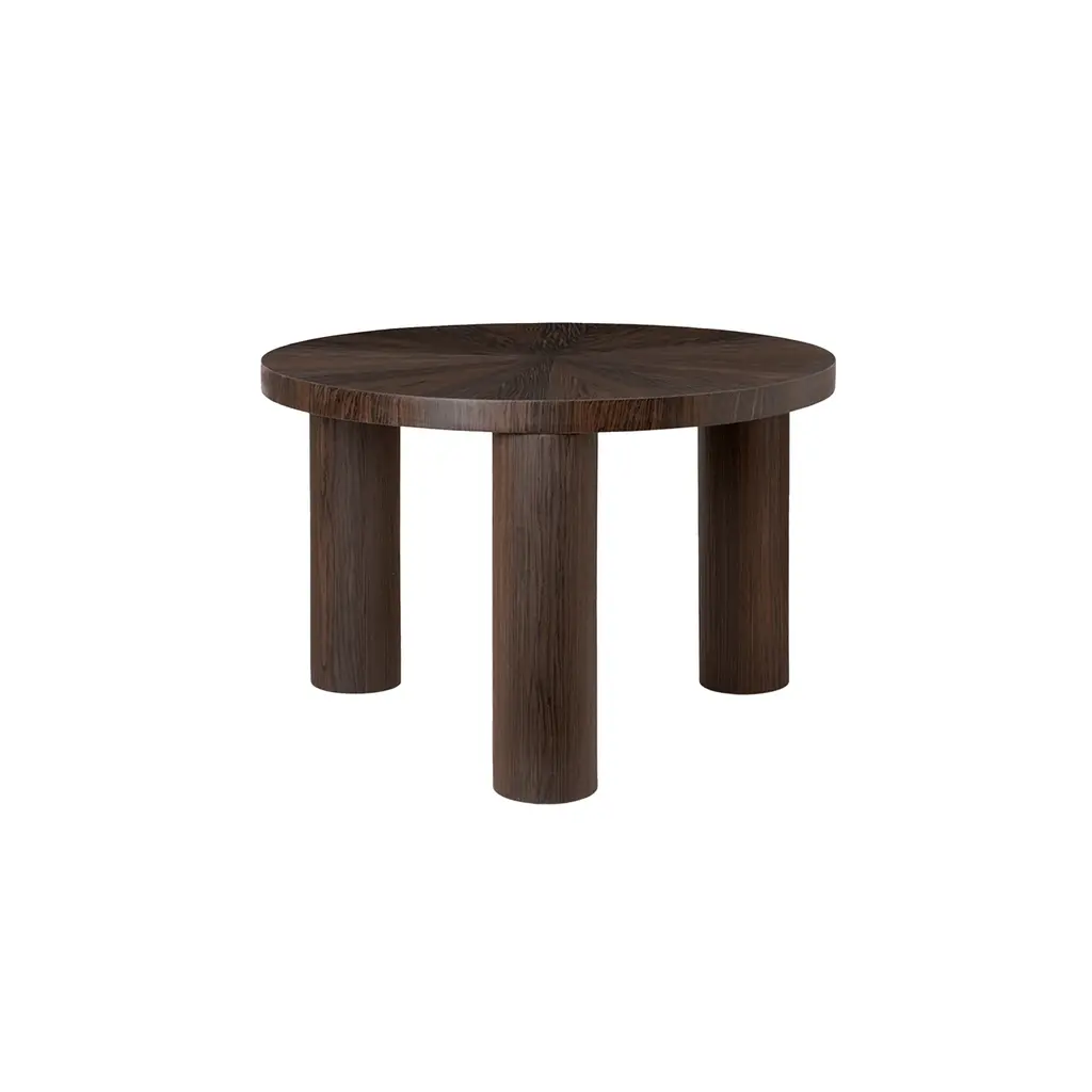 The legacy of Brutalist architecture meets Scandinavian refinement in Ferm Living's solidly proportioned wood coffee table tempered with intricate detailing. Sustainably crafted from FSC-certified timber, Post has three robust cylindrical legs and is embellished with hand-assembled inlaid marquetry. The smaller, higher model features a tabletop with a starburst pattern in spherical sectors while the larger, lower table has striped veneer marquetry legs. Each one is striking on also its own or they can be grouped in an impressive pairing.