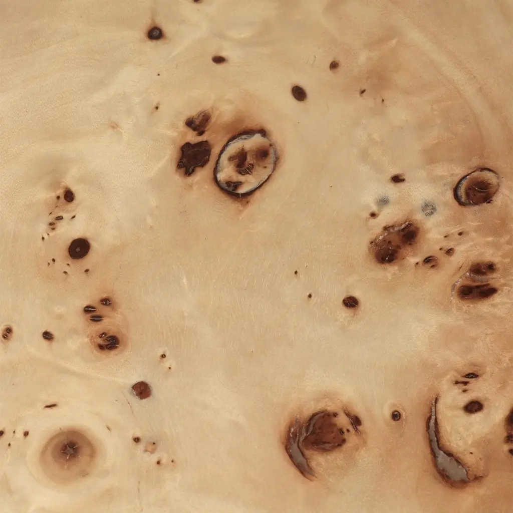 The legacy of Brutalist architecture meets Scandinavian refinement in Ferm Living's solidly proportioned wood coffee table tempered with intricate detailing. Sustainably crafted from FSC-certified timber, Post has three robust cylindrical legs and is embellished with hand-assembled inlaid marquetry. The smaller, higher model features a tabletop with a starburst pattern in spherical sectors while the larger, lower table has striped veneer marquetry legs. Each one is striking on also its own or they can be grouped in an impressive pairing.