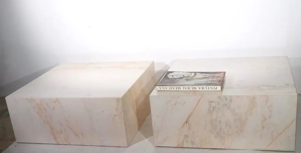 Post Modern Square Marble Coffee Tables, Circa 1970s, Pair Available