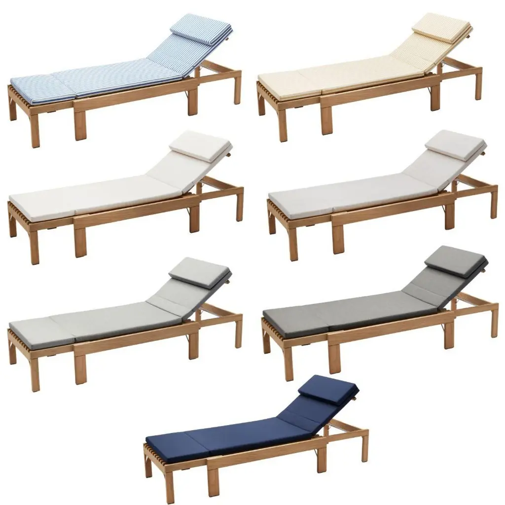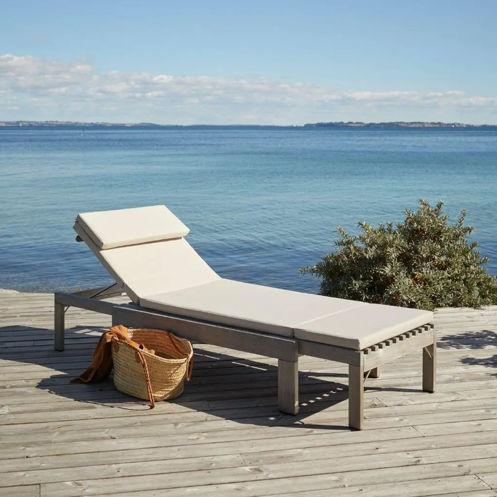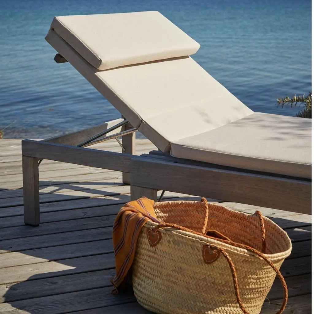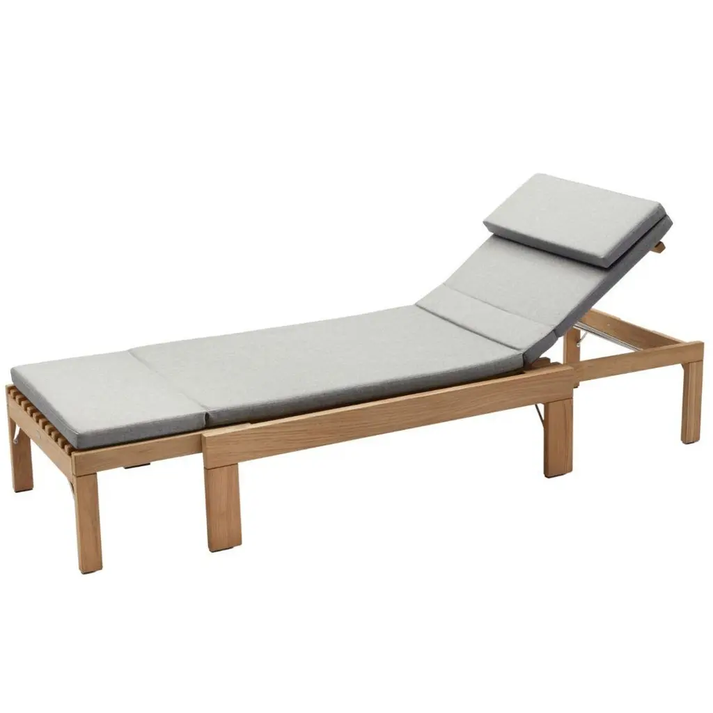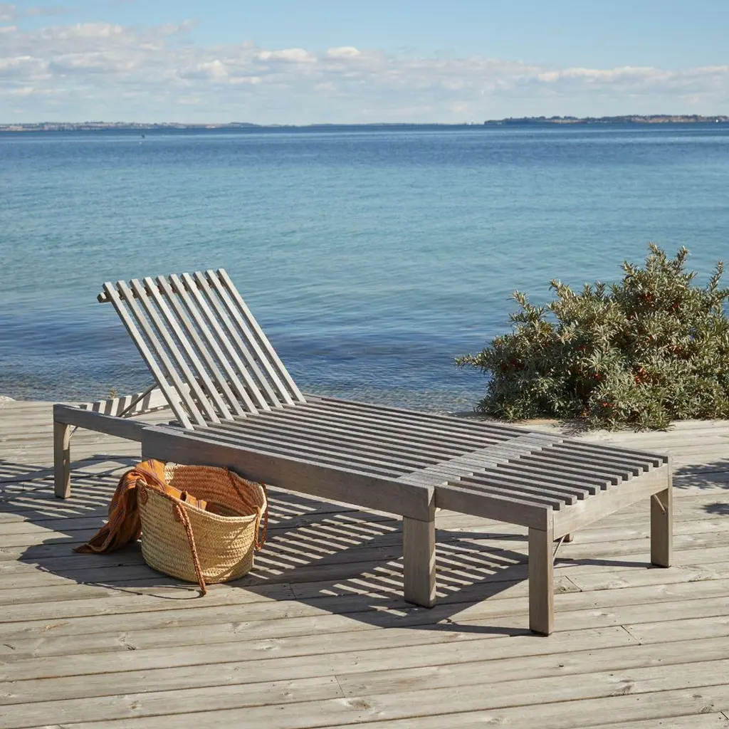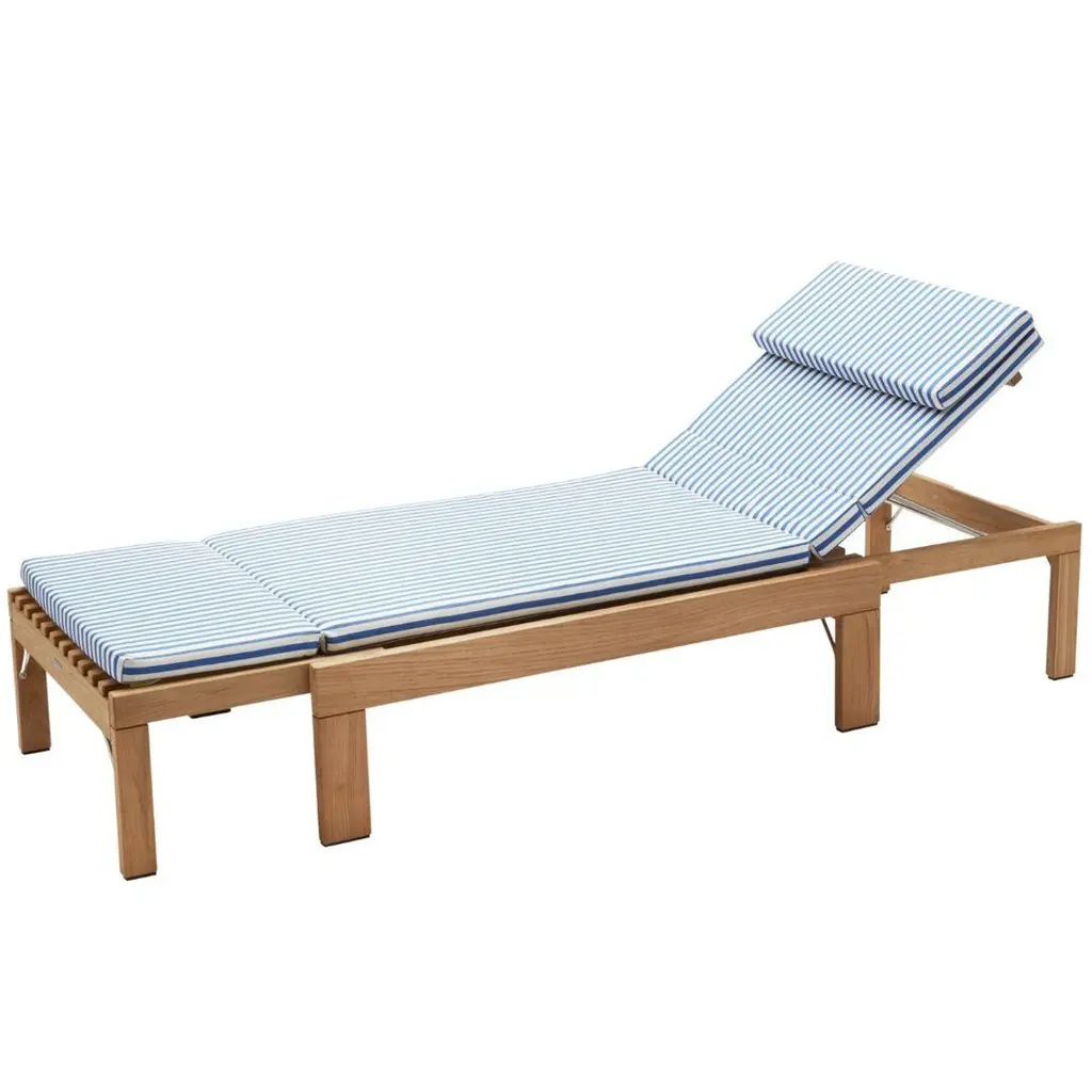 Povl B. Eskildsen outdoor 'Riviera' sunbed in teak for SkagerakSkagerak was founded in 1976 by Jesper and Vibeke Panduro, who took inspiration from their love of Scandinavian design and its rich tradition. The brand emphasizes sustainability by using responsibly sourced materials and production methods that minimize waste and reduce environmental impact. Each piece of handcrafted furniture is designed to age with grace and last for generations.The 'Riviera' has it all. It is a sunbed, a bench, a coffee table and a guest bed. This versatile design has become an outdoor classic, appreciated for its flexibility and straightforward appearance. The slatted teak construction is adjustable in length and can easily be supplemented by a comfortable cushion (available separately). Executed in FSC Certified teak to the exacting standards of Skagerak.Price per item. Available to order in unlimited quantities. Cushions (not included) are available separately in choice of white, papyrus, ash, charcoal, marine, blue stripes and yellow stripes. Please inquire.In stock lead time 2-3 weeks. Out of stock lead time can be an additional 3-4 weeks, or longer. Lead times and stock availability are subject to change at any time and without notice. Please inquire for current lead times prior to placing time sensitive orders.Made to order.All sales final.