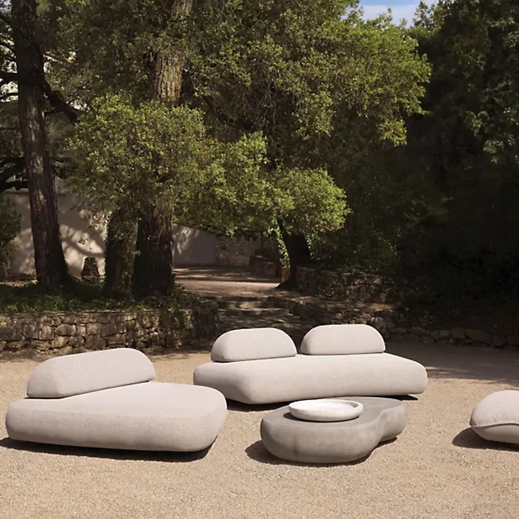 Introduce a touch of contemporary sculpture to your outdoor space with the Prime Outdoor Coffee Table from Eichholtz. Its unique curving pebble shape and flat top offer a refined look that effortlessly blends with various decor. Each table is made in Indonesia from glass fiber-reinforced concrete, and subtle texture variations make each table subtly distinct. The table is as durable as it is stylish, intended to withstand the elements while maintaining its simple shape with a modern edge.