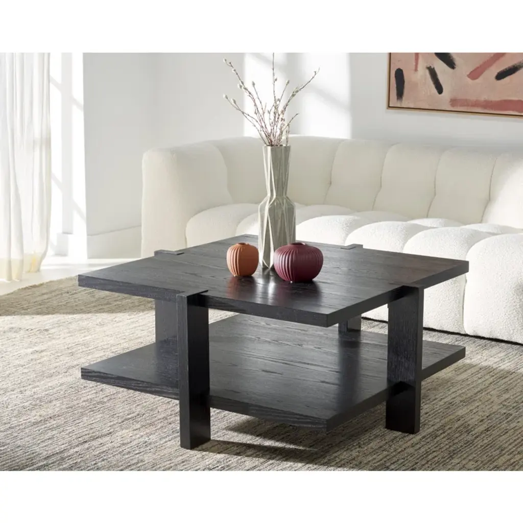 Give a sleek and sophisticated update to your home with our Provo coffee table. Combining a clean-lined profile with elevated details, our coffee table brings effortless charm to any room. The table beautifully exposes its joinery detail to attain a bold architectural appeal. Its clean and crisp silhouette highlights the grains of the neutral color oak wood veneer. Featuring a lower shelf, our coffee table provides ample space for both display and storage. It remains a versatile and sophisticated addition to a living space, bedroom, or home office.
