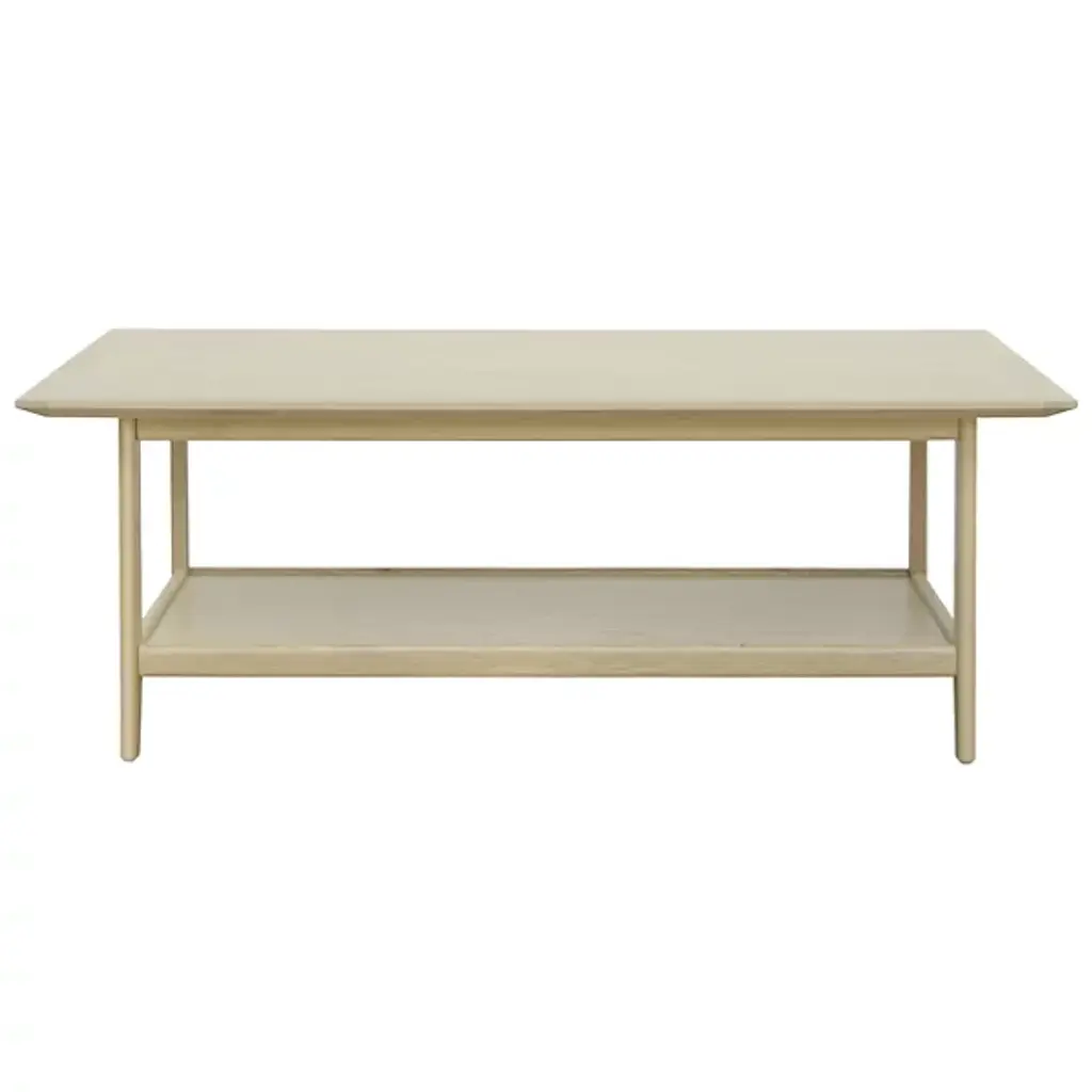 The Pryce Coffee Table from Surya combines smooth simplicity with functional design. Expertly crafted from rich oak wood with a grain on full display, it shows off a two-tier structure with a smooth top, beveled underneath to draw attention to the display. A lower shelf featuring a raised lip secures essential items, while its elongated rectangular form is supported by four slender, tapered legs, exuding contemporary elegance. This versatile table is made in Vietnam and effortlessly balances modern style with everyday practicality, making it a standout addition to any living space.