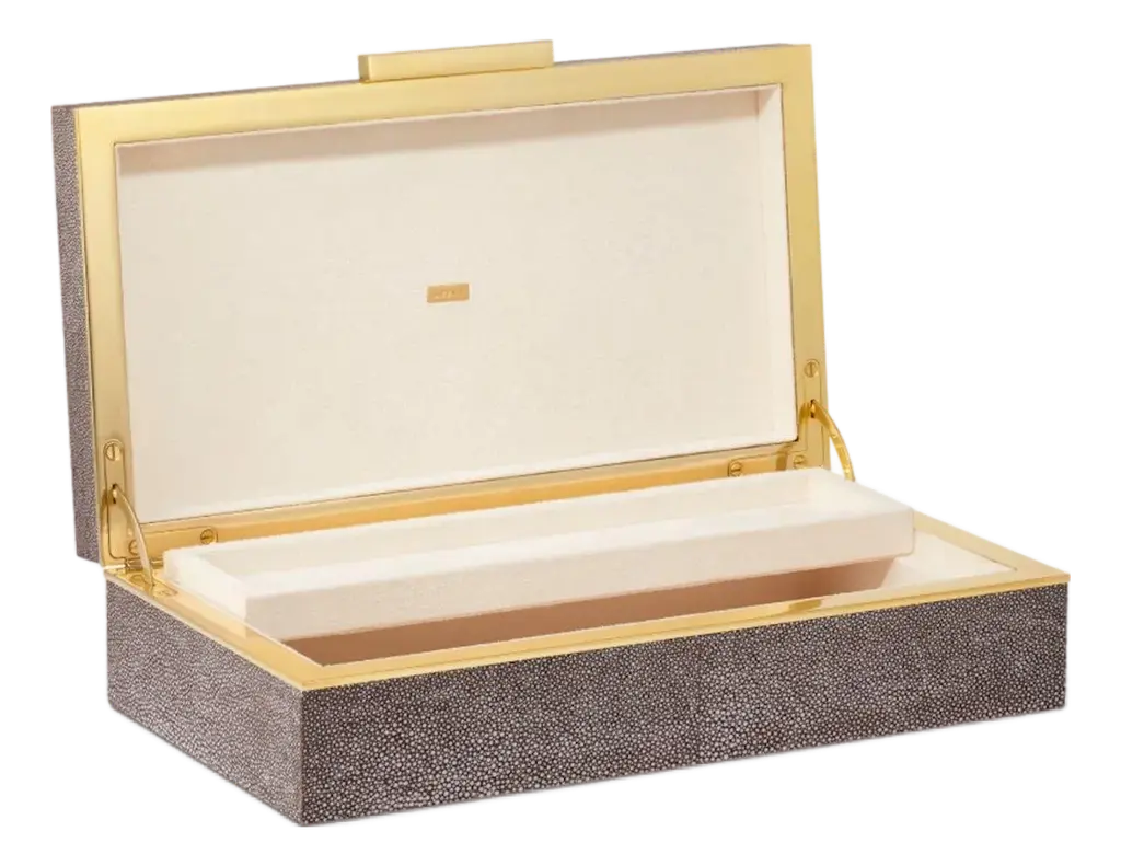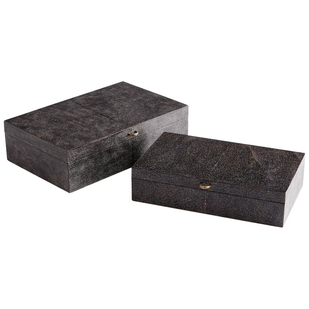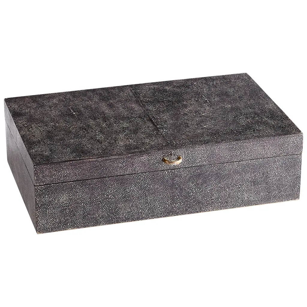Organic-Boho loveliness graces this classic leather container. A sleek, textured grey finish adorns the exterior of this decorative box. Store your jewelry, small electronics, trinkets, or any other personal items in the Puma container. This tabletop accessory is available in a small and large option for added versatility. Display on a bedroom dresser, powder room counter, or sitting room coffee table to add a natural elegance to your ensemble.