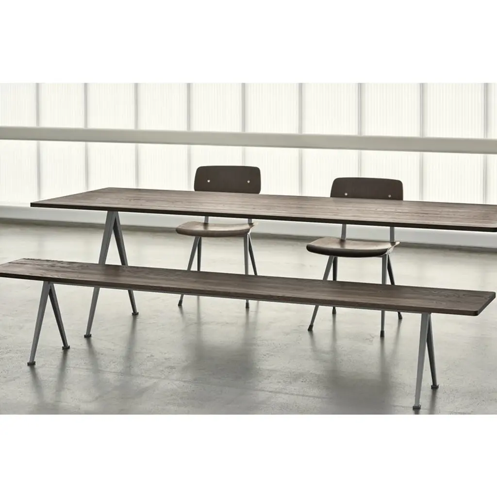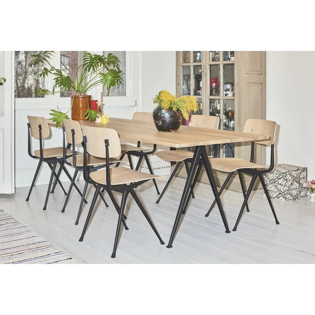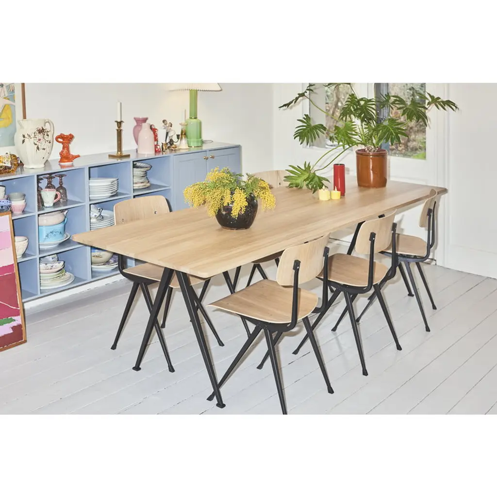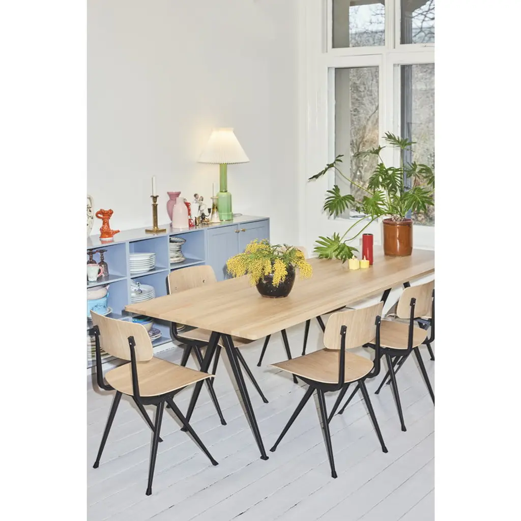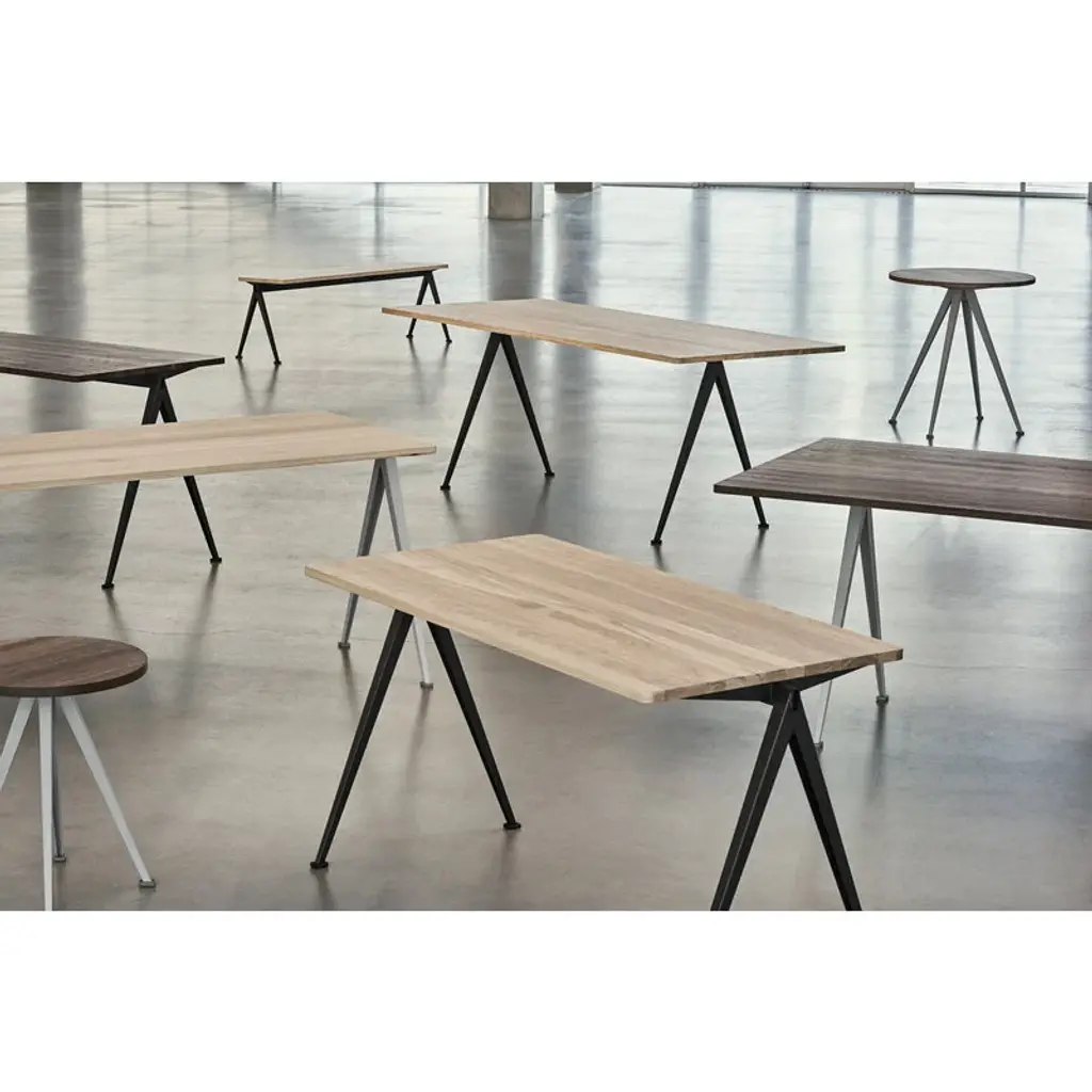 HAY’s Pyramid table 02, created by Wim Rietveld for Ahrend in the 1950s, was relaunched by HAY in collaboration with Ahrend in 2017. A simplistic combination of an angular steel frame and a sturdy, rectangular oak top, Pyramid was regarded in the 50s as a masterpiece in the innovative use of sheet steel, and it has maintained its fresh appearance until today. During the past decades, Pyramid has been widely used in both public and private contexts. The Pyramid table is available in several different combinations of base colors and wood finishes. HAY's Pyramid collection includes also a bench, coffee table and Café table 21.