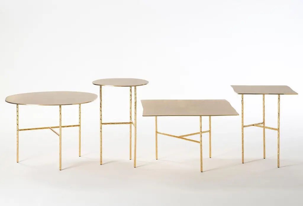 Coffee table Quadruple round with all structure in wrought iron in gold finish 24-karat.Also available in nickel finish.Also available in Quadruple round side table,Quadruple square coffee table or Quadruple Square side table.